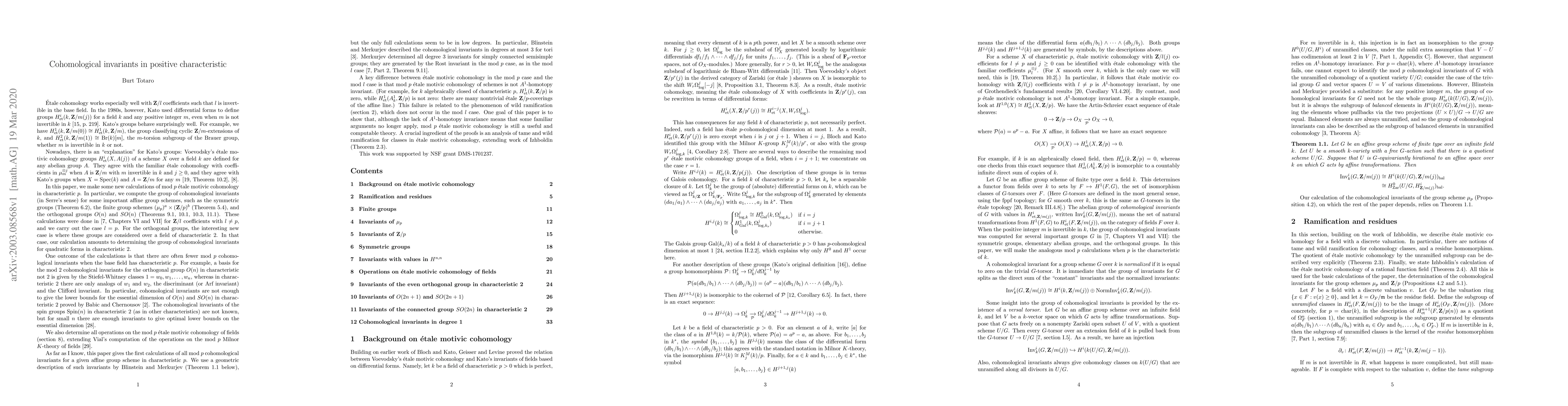This paper determines mod p cohomological invariants for various affine group schemes, focusing on symmetric and orthogonal groups in characteristic 2, and extends Vial's operations on mod p etale motivic cohomology of fields. The findings are based on etale motivic cohomology and Kato's Galois cohomology.