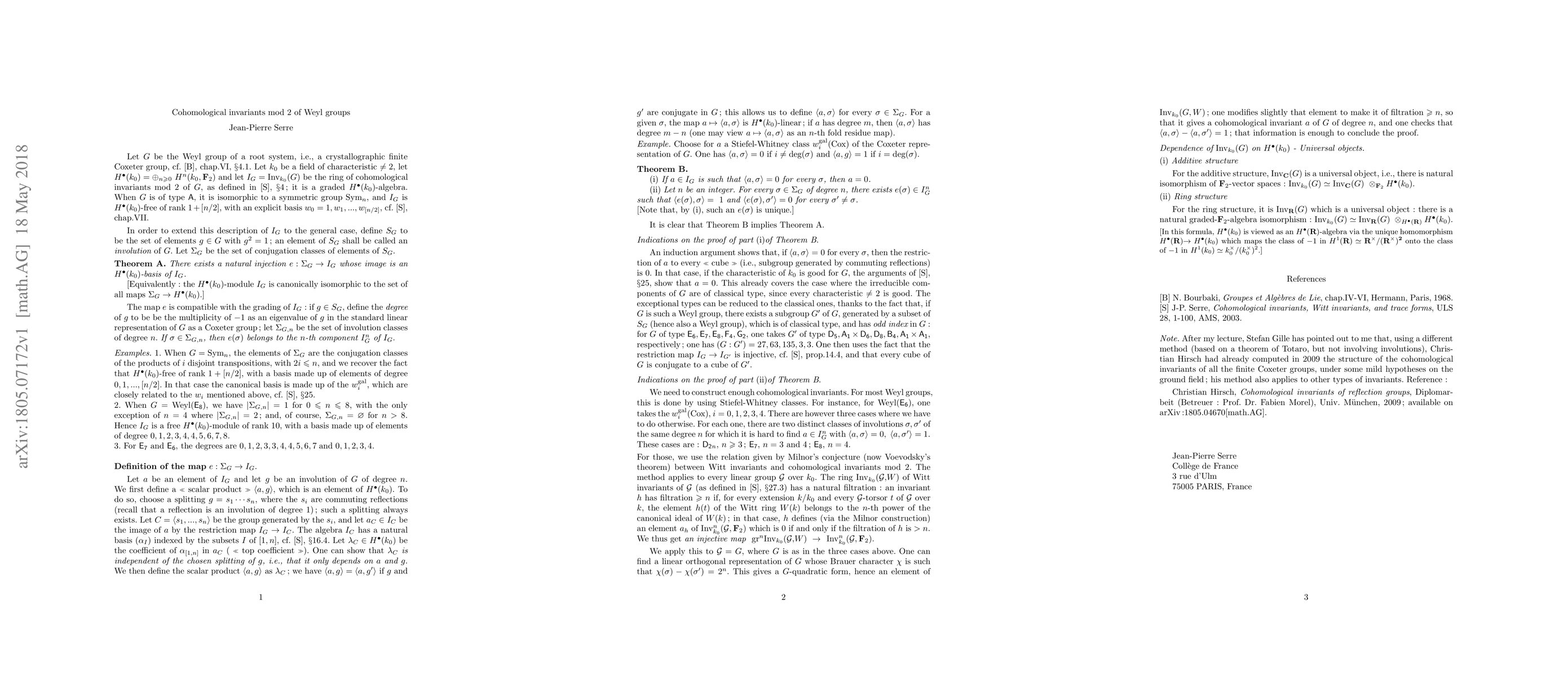 Summary: This paper provides a detailed description of cohomological invariants of Weyl groups modulo 2, relating them to the involution classes within the group. The findings offer a new perspective on the structure of these invariants.