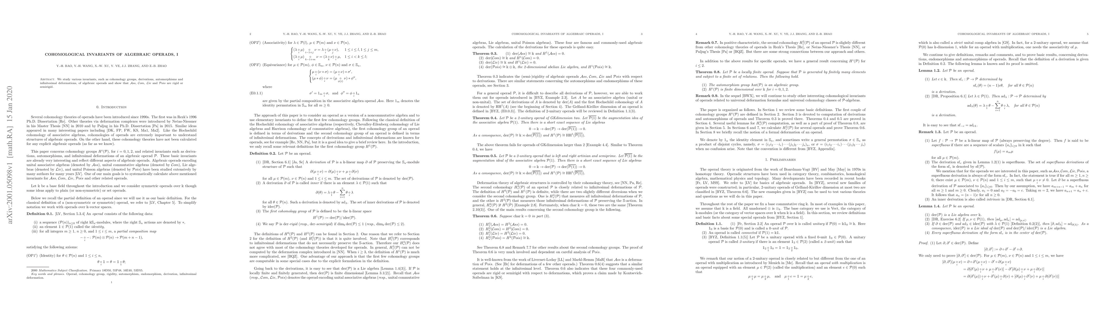 This paper investigates cohomological invariants of algebraic operads, demonstrating that $\mathcal{A}ss$, $\mathcal{C}com$, $\mathcal{L}ie$, and $\mathcal{P}ois$ exhibit rigidity or semirigidity. The study focuses on cohomology groups, derivations, automorphisms, and infinitesimal deformations.