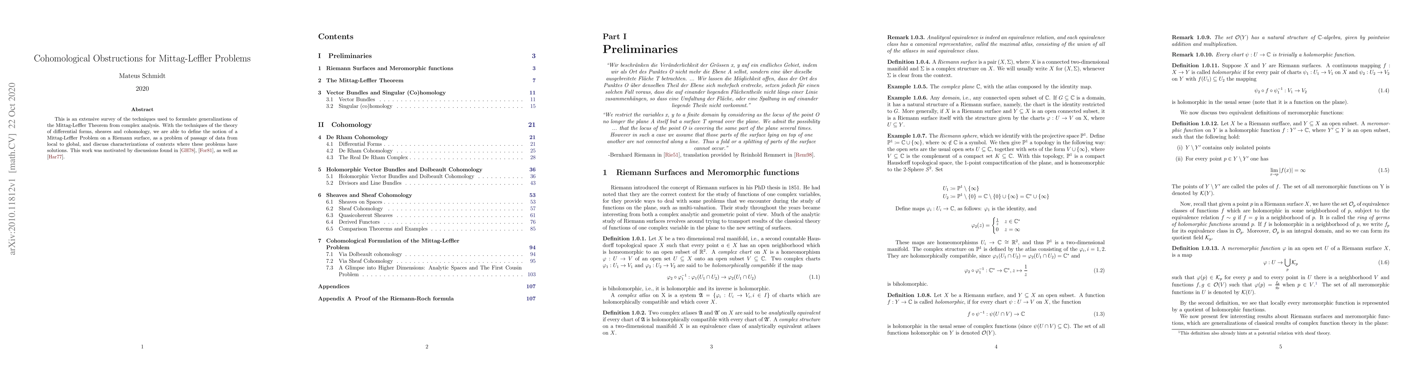 This paper surveys techniques using differential forms, sheaves, and cohomology to generalize the Mittag-Leffler Theorem, defining Mittag-Leffler Problems on Riemann surfaces and discussing conditions for their solvability. It explores the passage of local data to global solutions.