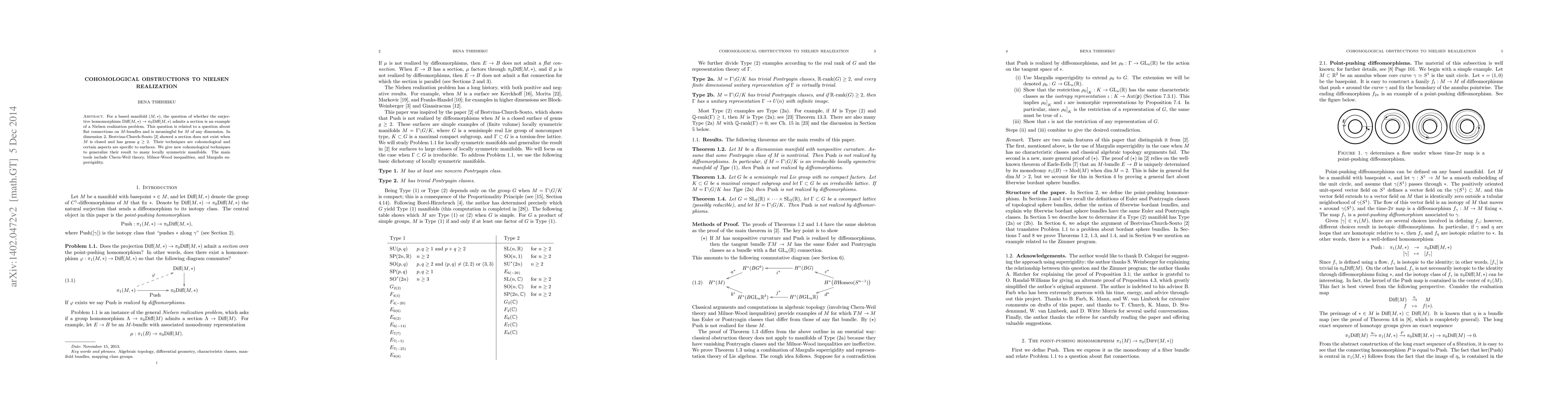 For a based manifold (M,*), the question of whether the surjection Diff(M,*) \rightarrow \pi_0 Diff(M,*) admits a section is an example of a Nielsen realization problem. This question is related to a question about flat connections on M-bundles and is meaningful for M of any dimension. In dimension 2, Bestvina-Church-Souto showed a section does not exist when M is closed and has genus g\ge 2. Their techniques are cohomological and certain aspects are specific to surfaces. We give new cohomological techniques to generalize their result to many locally symmetric manifolds. The main tools include Chern-Weil theory, Milnor-Wood inequalities, and Margulis superrigidity.