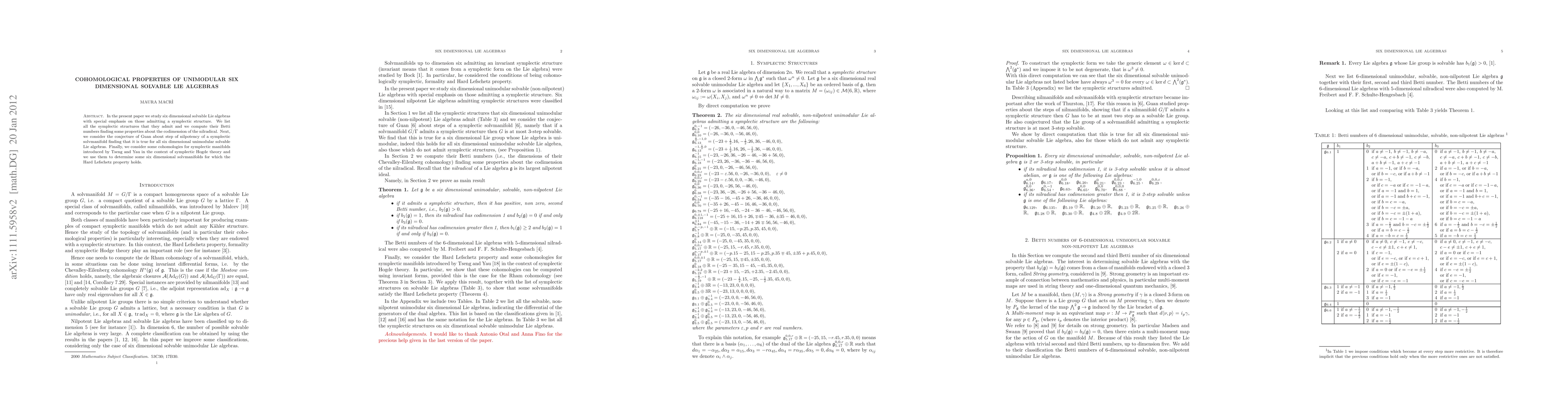 In the present paper we study six dimensional solvable Lie algebras with special emphasis on those admitting a symplectic structure. We list all the symplectic structures that they admit and we compute their Betti numbers finding some properties about the codimension of the nilradical. Next, we consider the conjecture of Guan about step of nilpotency of a symplectic solvmanifold finding that it is true for all six dimensional unimodular solvable Lie algebras. Finally, we consider some cohomologies for symplectic manifolds introduced by Tseng and Yau in the context of symplectic Hogde theory and we use them to determine some six dimensional solvmanifolds for which the Hard Lefschetz property holds.