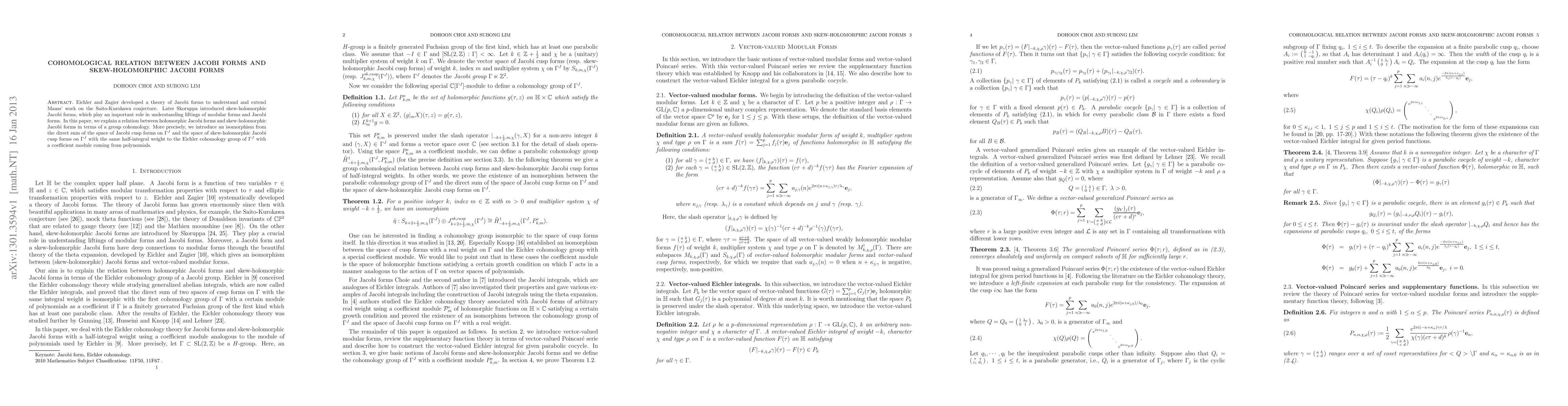 This paper establishes a cohomological relation between holomorphic Jacobi forms and skew-holomorphic Jacobi forms, introducing an isomorphism linking their direct sum with the Eichler cohomology group of $\Gamma^J$ using a polynomial coefficient module. The work extends the theoretical framework initiated by Eichler and Zagier and Skoruppa.