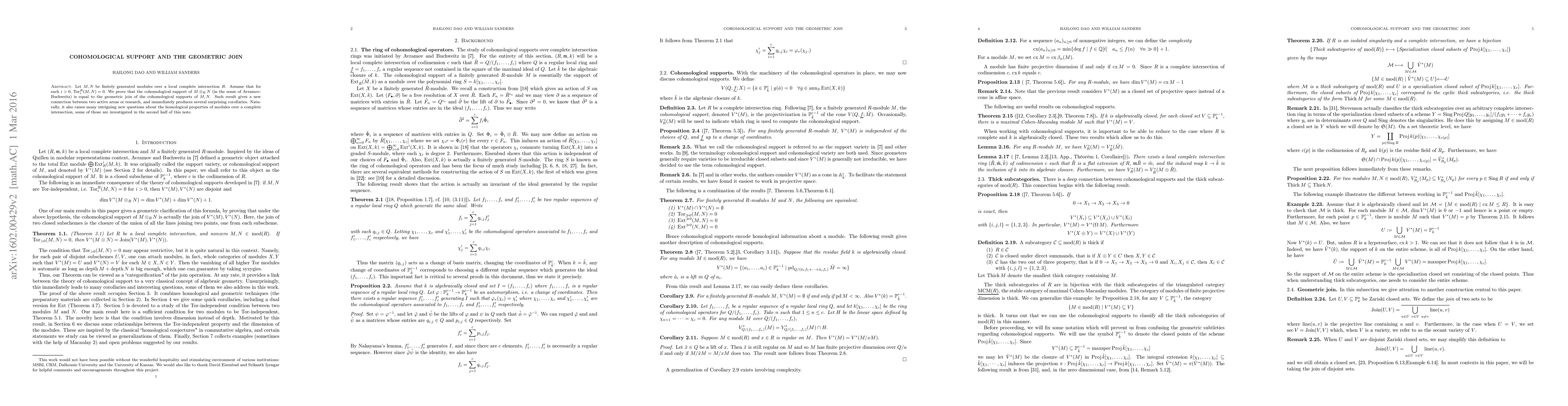 Let $M,N$ be finitely generated modules over a local complete intersection $R$. Assume that for each $i>0$, $\mathrm{Tor}^R_i(M,N)=0$. We prove that the cohomological support of $M\otimes_R N$ (in the sense of Avramov-Buchweitz) is equal to the geometric join of the cohomological supports of $M,N$. Such result gives a new connection between two active areas or research, and immediately produces several surprising corollaries. Naturally, it also raises many intriguing new questions about the homological properties of modules over a complete intersection, some of those are investigated in the second half of this note.