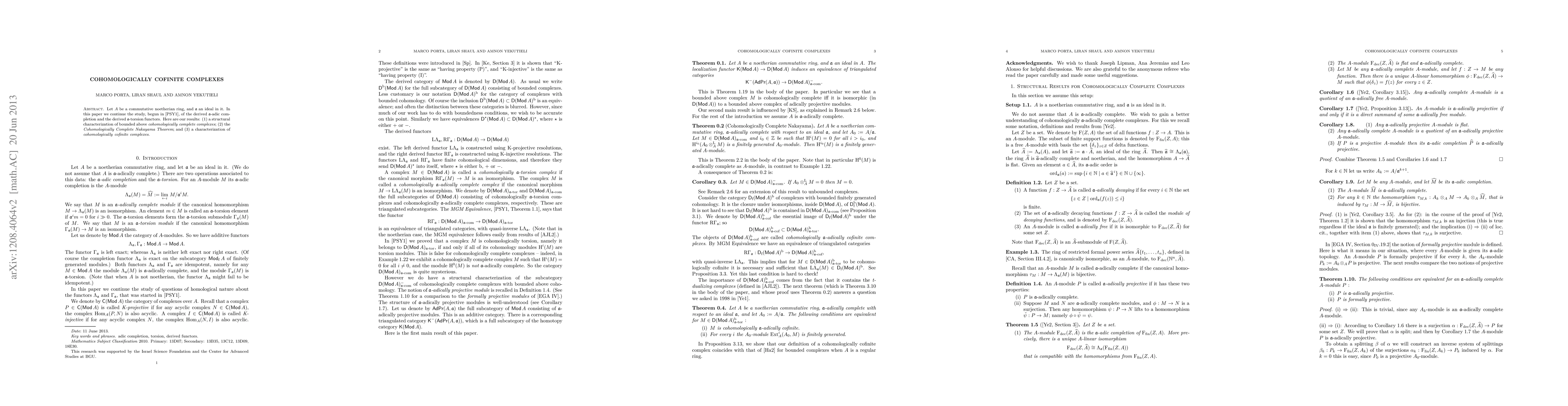 This paper studies derived \a-adic completion and derived \a-torsion functors for commutative noetherian rings, focusing on bounded above cohomologically complete complexes, proving the Cohomologically Complete Nakayama Theorem, and characterizing cohomologically cofinite complexes.