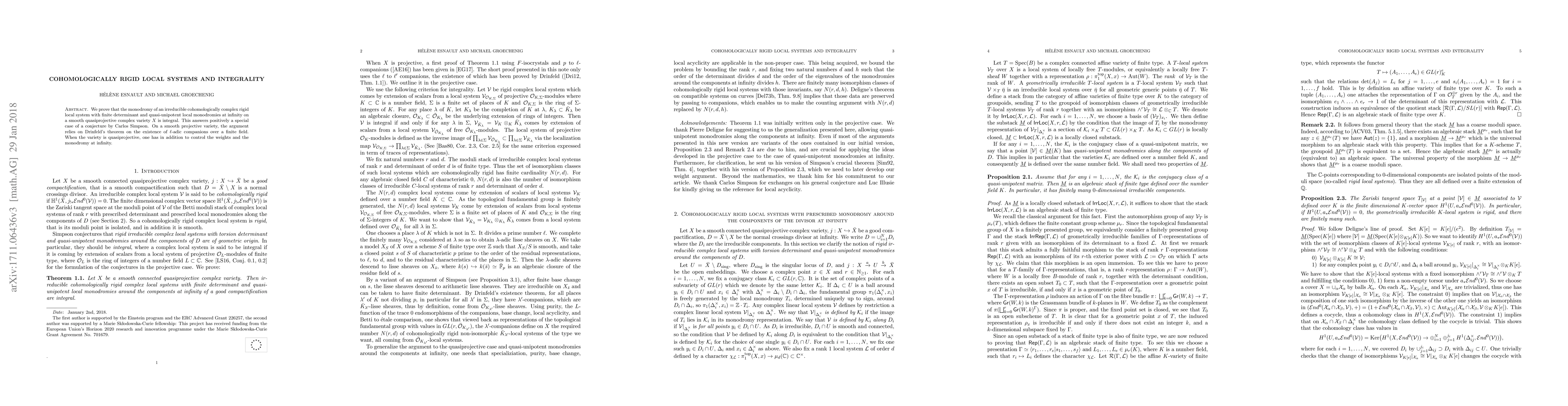 Hélène Esnault, Michael Groechenig, Johan de Jong