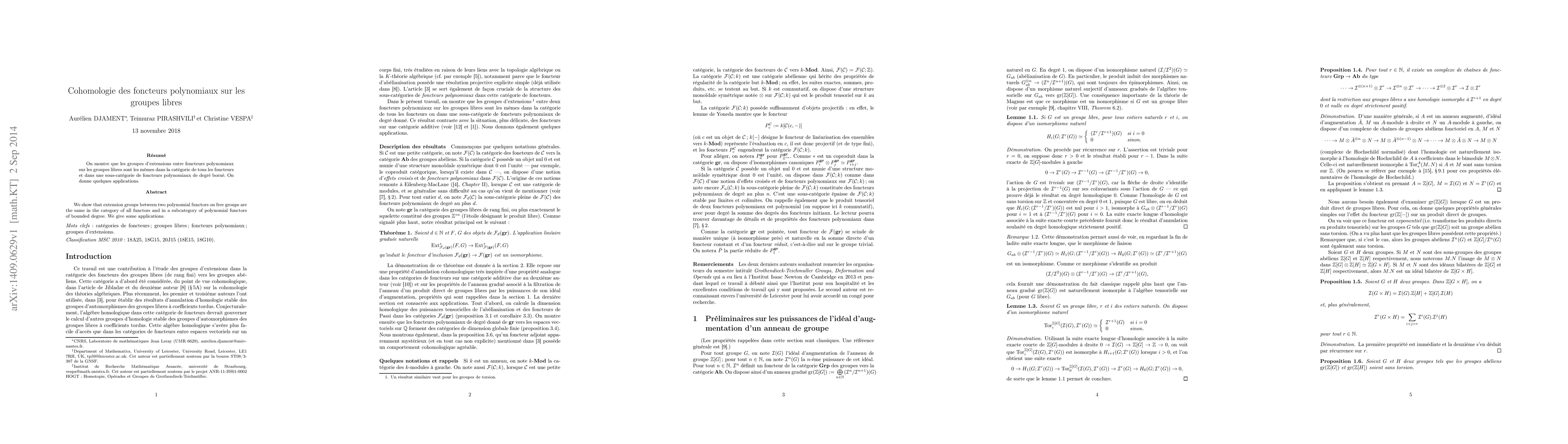 We show that extension groups between two polynomial functors on free groups are the same in the category of all functors and in a subcategory of polynomial functors of bounded degree. We give some applications. ---- On montre que les groupes d'extensions entre foncteurs polynomiaux sur les groupes libres sont les m\^emes dans la cat\'egorie de tous les foncteurs et dans une sous-cat\'egorie de foncteurs polynomiaux de degr\'e born\'e. On donne quelques applications.