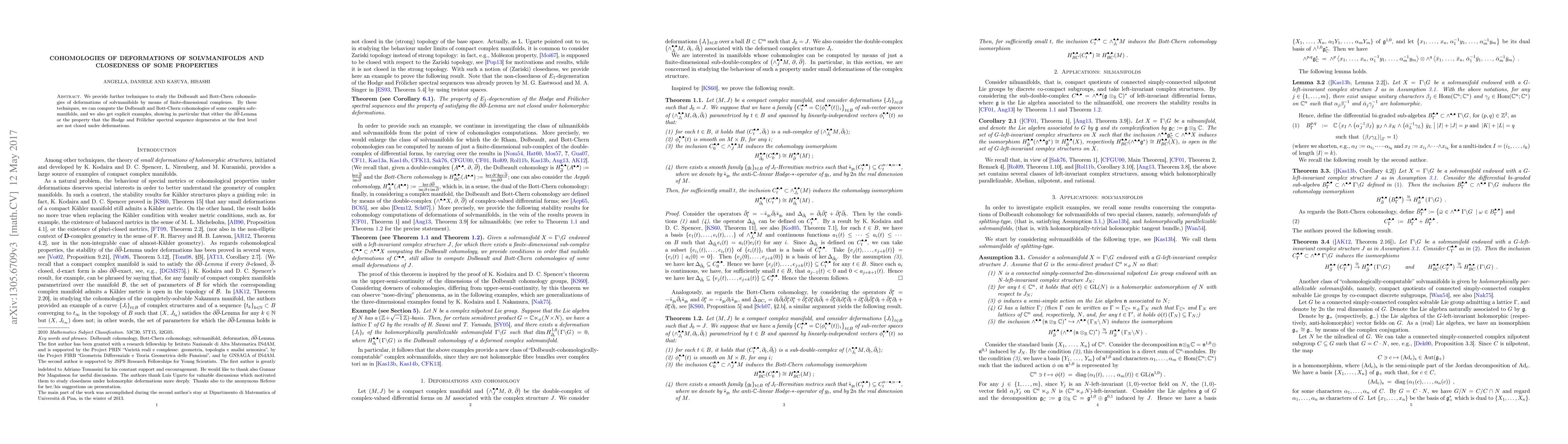 Summary: This paper develops new methods to compute Dolbeault and Bott-Chern cohomologies for deformations of solvmanifolds using finite-dimensional complexes, revealing that certain properties like the $\partial\overline{\partial}$-Lemma and first-level degeneration of the Hodge-Fr\"olicher spectral sequence are not preserved under deformations.