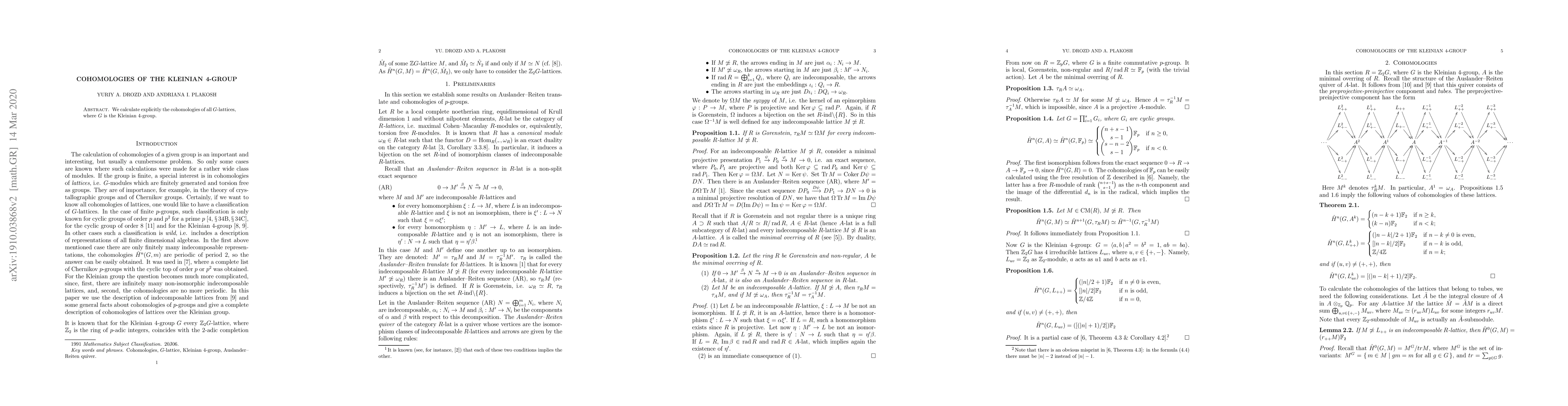 We calculate explicitly the cohomologies of all $G$-lattices, where $G$ is the Kleinian $4$-group.