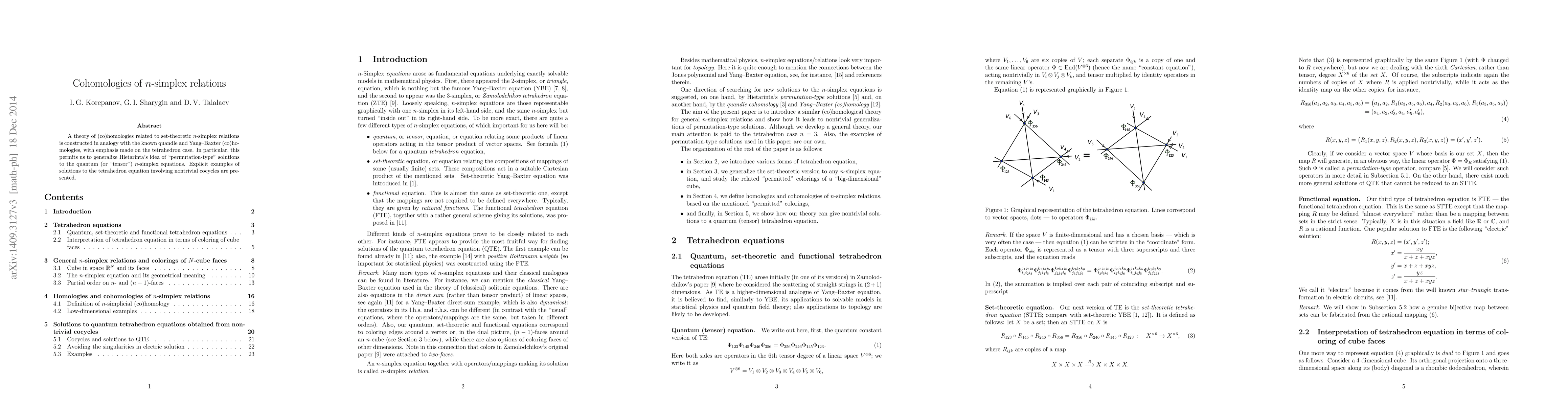 Researchers developed a theory of (co)homologies related to set-theoretic n-simplex relations, enabling the generalization of solutions to quantum n-simplex equations. They presented explicit examples involving nontrivial cocycles in the tetrahedron case.