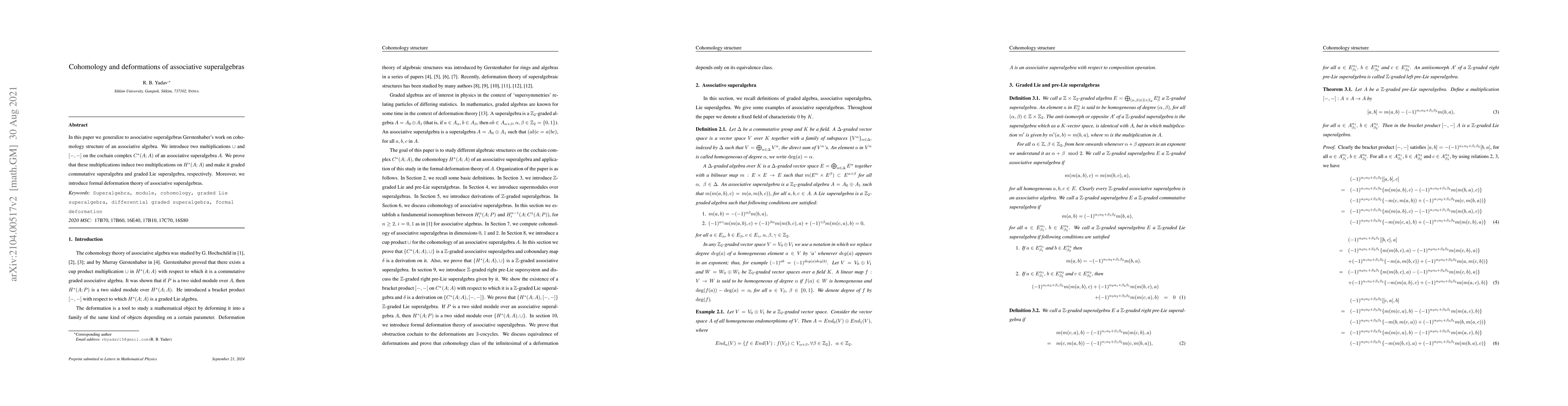 This paper generalizes Gerstenhaber's cohomology theory to associative superalgebras, introducing two multiplications on their cochain complex that make the cohomology graded commutative and graded Lie superalgebras. It also explores the formal deformation theory of associative superalgebras.