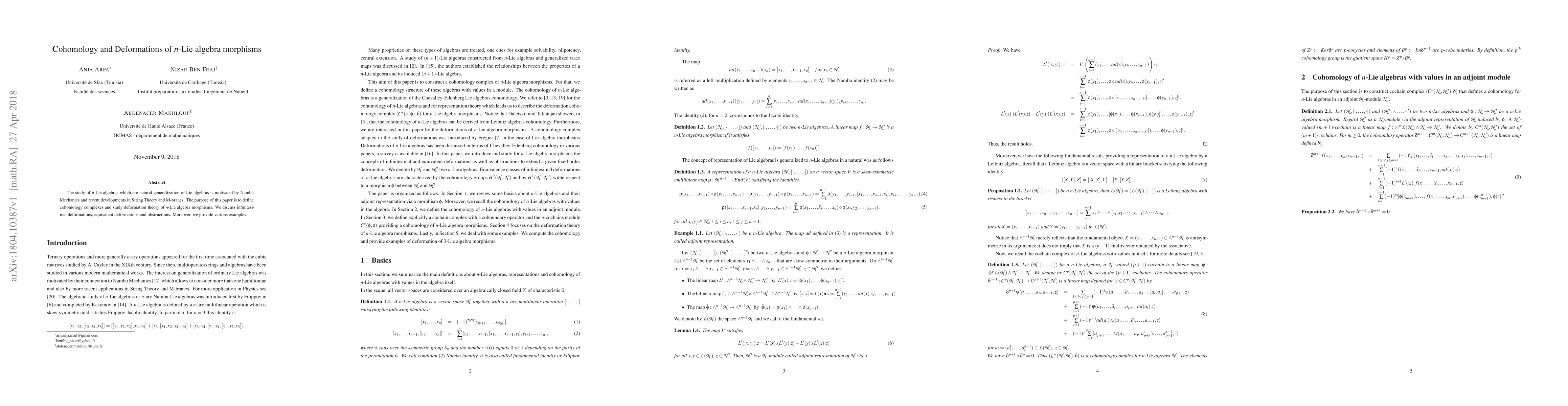 This paper defines cohomology complexes and explores the deformation theory of $n$-Lie algebra morphisms, focusing on infinitesimal deformations, equivalent deformations, and obstructions, with applications to Nambu Mechanics and String Theory. It includes several illustrative examples.