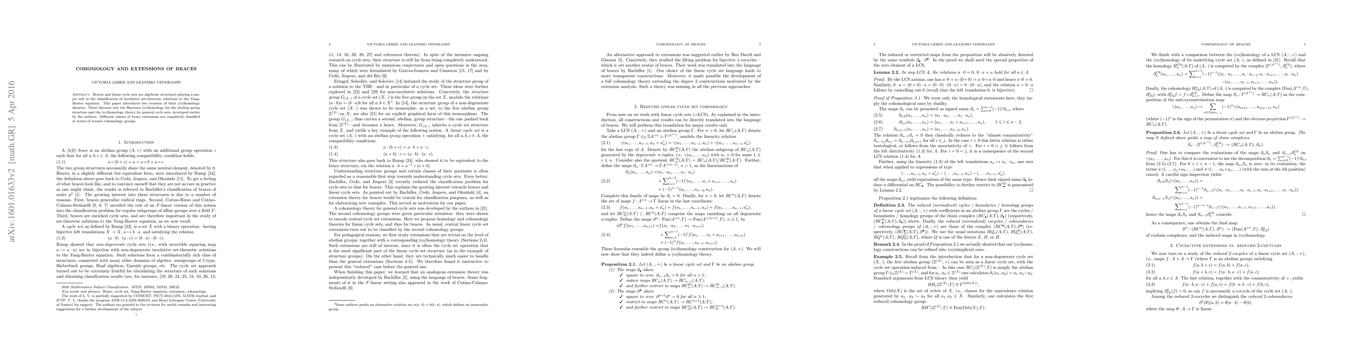 Researchers developed new cohomology theories for braces and linear cycle sets to classify involutive set-theoretic solutions to the Yang-Baxter equation, with a focus on brace extensions and their relation to second cohomology groups.