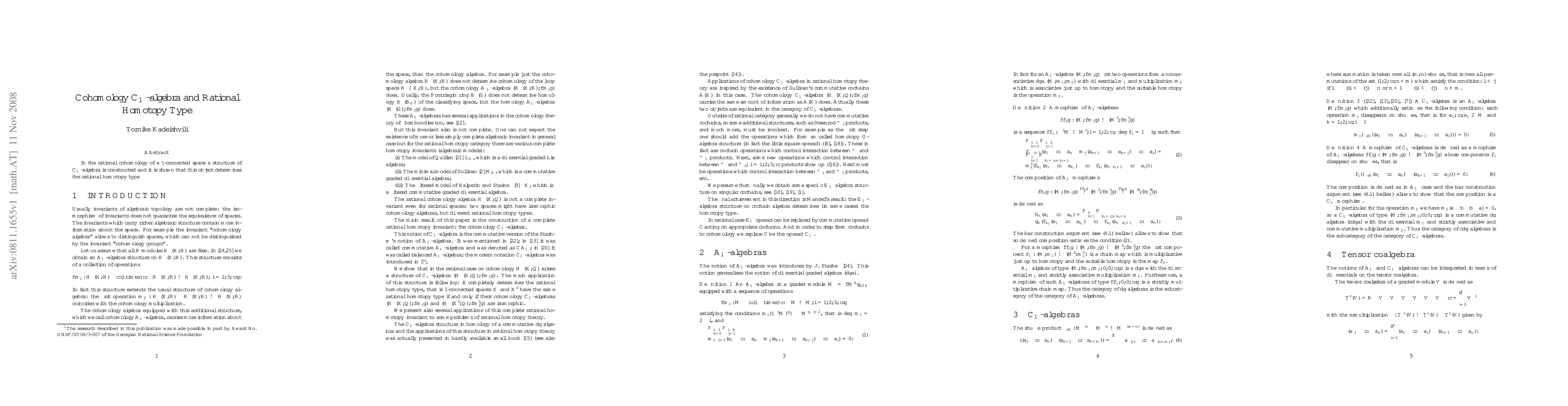 Summary: This paper constructs a $C_{\infty}$-algebra structure in the rational cohomology of a 1-connected space and demonstrates that this structure uniquely determines the space's rational homotopy type.