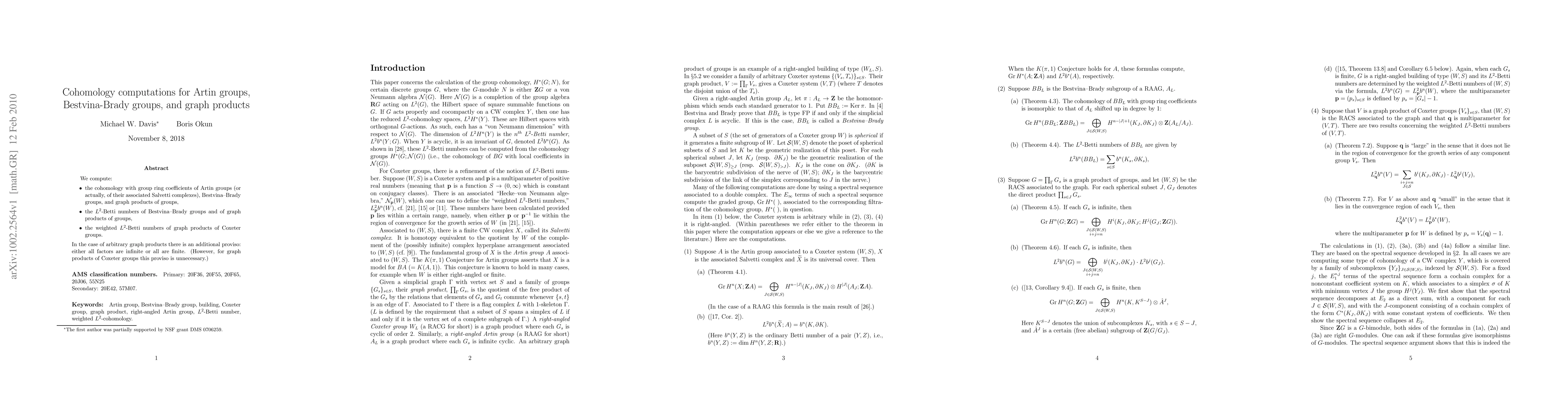 We compute: * the cohomology with group ring coefficients of Artin groups (or actually, of their associated Salvetti complexes), Bestvina-Brady groups, and graph products of groups, * the L^2-Betti numbers of Bestvina-Brady groups and of graph products of groups, * the weighted L^2-Betti numbers of graph products of Coxeter groups. In the case of arbitrary graph products there is an additional proviso: either all factors are infinite or all are finite.(However, for graph products of Coxeter groups this proviso is unnecessary.)