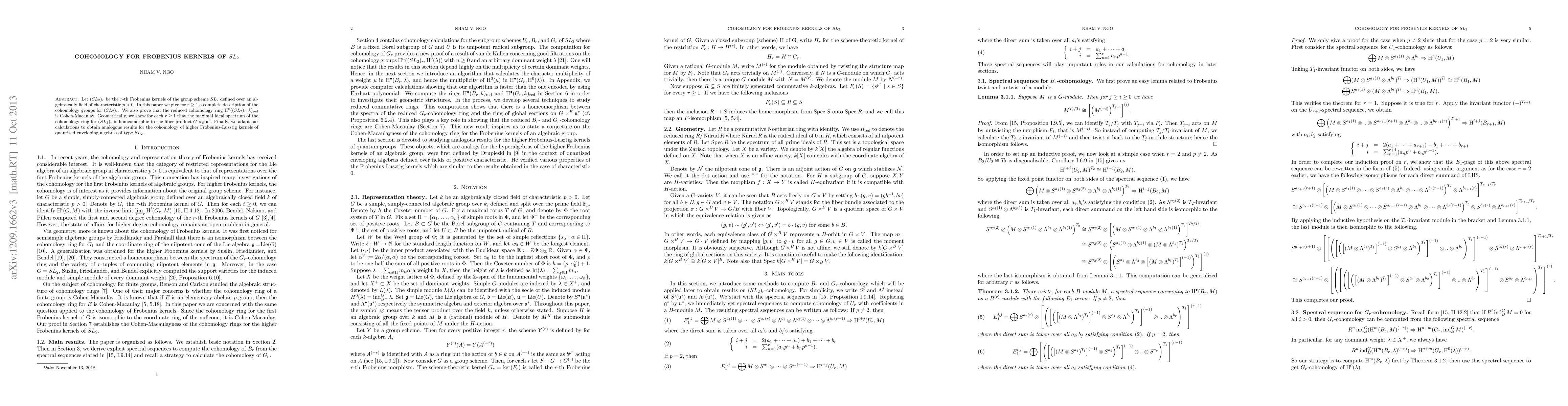 This paper provides a complete description of the cohomology groups for the $r$-th Frobenius kernels of $SL_2$ in characteristic $p>2$ and proves that the reduced cohomology ring is Cohen-Macaulay. It also establishes a geometric homeomorphism between the maximal ideal spectrum of the cohomology ring and a specific fiber product.
