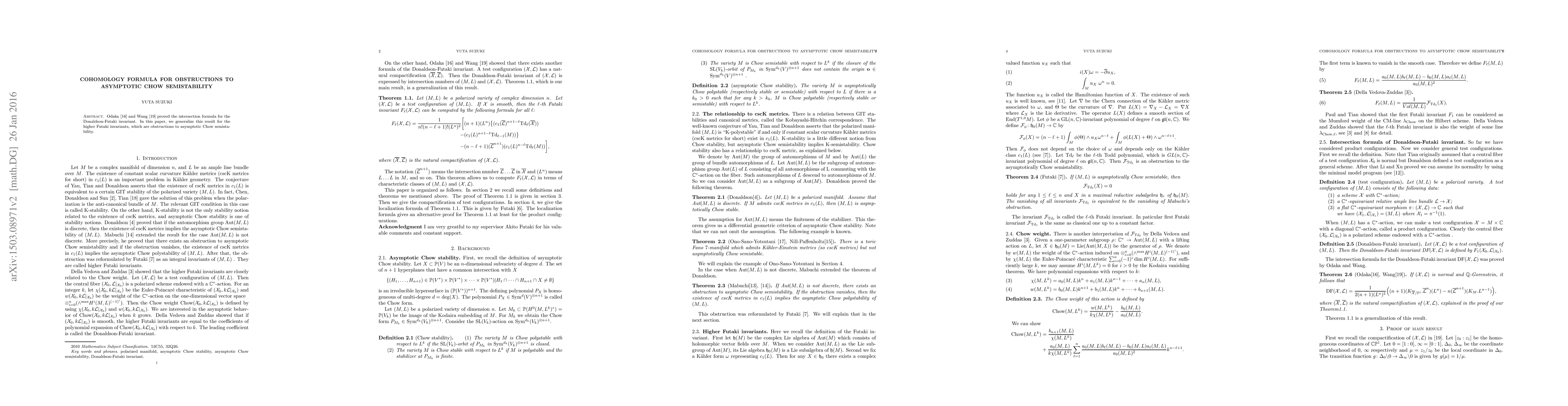 This paper generalizes the intersection formula to higher Futaki invariants, which determine asymptotic Chow semistability, providing new insights into obstructions to this stability condition.