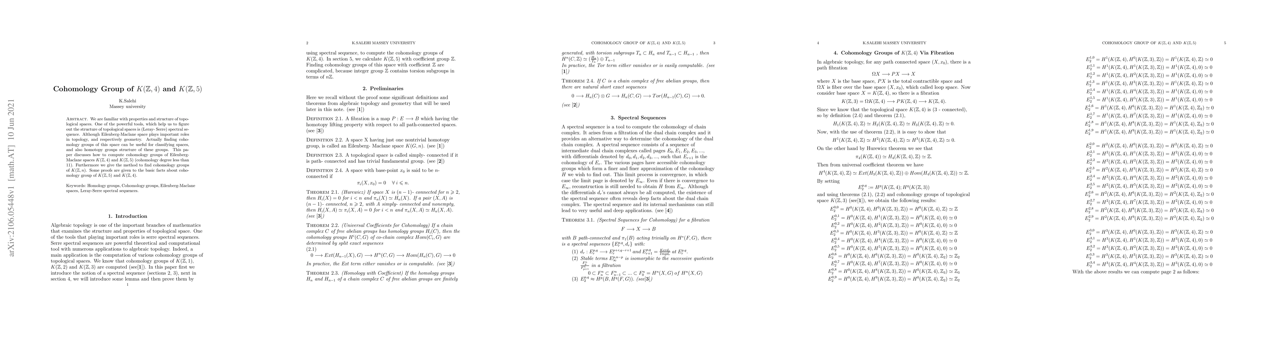 The paper provides a detailed computation of cohomology groups of specific Eilenberg-Maclane spaces using spectral sequences, including proofs for certain lemmas.