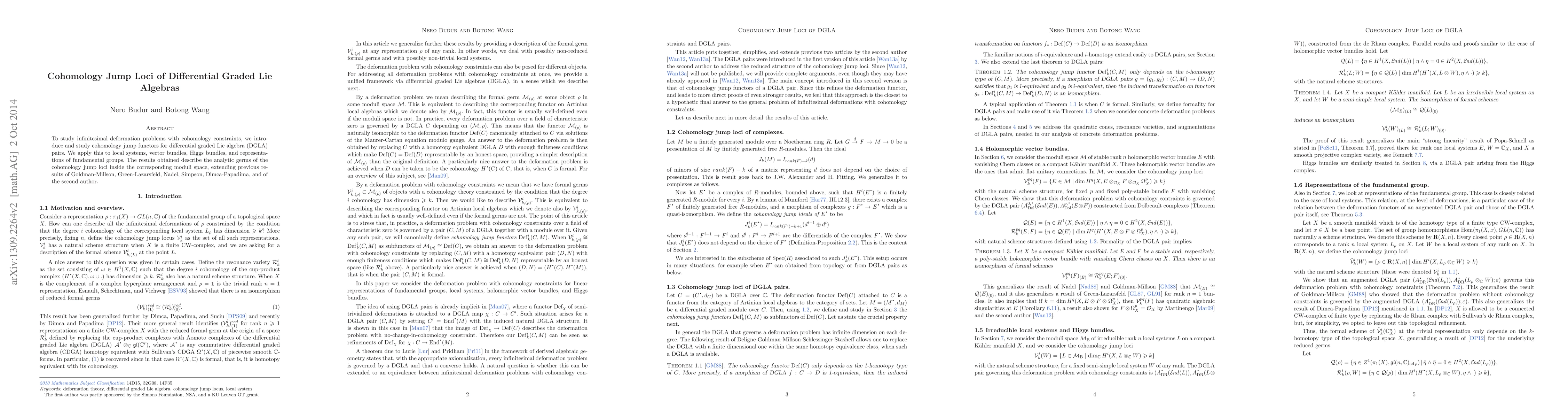 This paper introduces cohomology jump functors for differential graded Lie algebra (DGLA) pairs to study infinitesimal deformation problems with cohomology constraints. It extends previous results by describing the analytic germs of cohomology jump loci in the moduli spaces of local systems, vector bundles, Higgs bundles, and fundamental group representations.