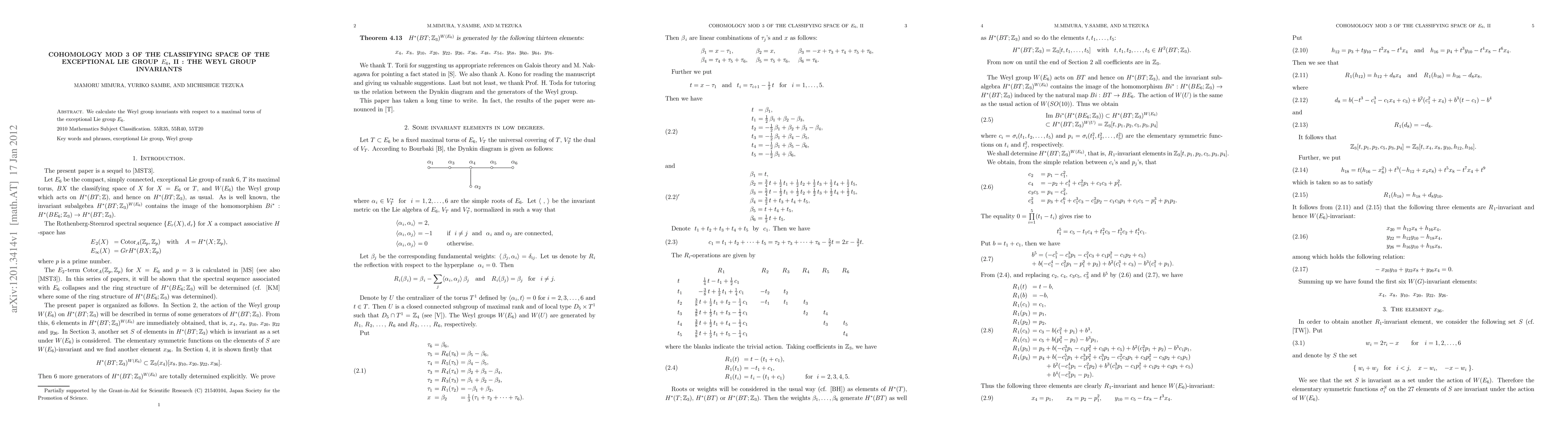 We calculate the Weyl group invariants with respect to a maximal torus of the exceptional Lie group $E_6$.