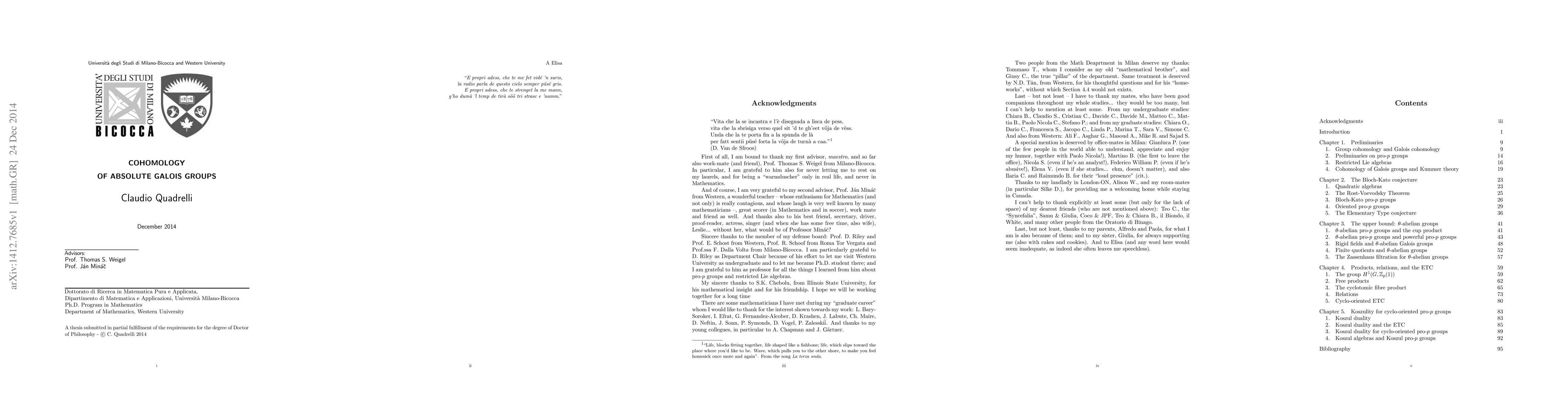 The main problem this thesis deals with is the characterization of profinite groups which are realizable as absolute Galois groups of fields: this is currently one of the major problems in Galois theory. Usually one reduces the problem to the pro-$p$ case, i.e., one would like to know which pro-$p$ groups occur as maximal pro-$p$ Galois groups, i.e., maximal pro-$p$ quotients of absolute Galois groups. Indeed, pro-$p$ groups are easier to deal with than general profinite groups, yet they carry a lot of information on the whole absolute Galois group. We define a new class of pro-$p$ groups, called Bloch-Kato pro-$p$ group, whose Galois cohomology satisfies the consequences of the Bloch-Kato conjecture. Also we introduce the notion of cyclotomic orientation for a pro-$p$ group. With this approach, we are able to recover new substantial information about the structure of maximal pro-$p$ Galois groups, and in particular on $\theta$-abelian pro-$p$ groups, which represent the "upper bound" of such groups. Also, we study the restricted Lie algebra and the universal envelope induced by the Zassenhaus filtration of a maximal pro-$p$ Galois group, and their relations with Galois cohomology via Koszul duality. Altogether, this thesis provides a rather new approach to maximal pro-$p$ Galois groups, besides new substantial results.