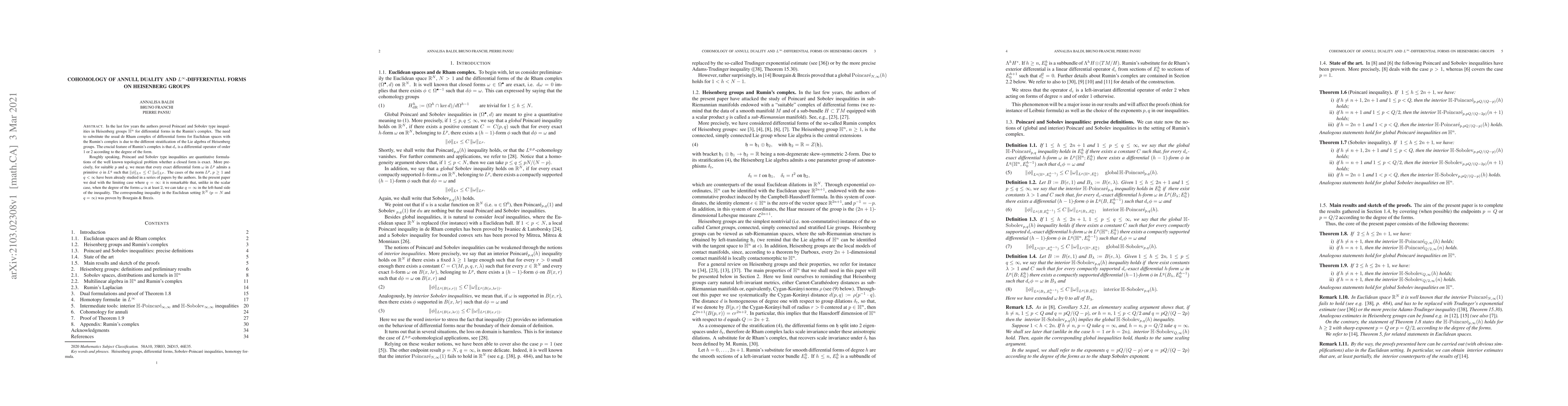 In the last few years the authors proved Poincar\'e and Sobolev type inequalities in Heisenberg groups $\mathbb{H}^n$ for differential forms in the Rumin's complex. The need to substitute the usual de Rham complex of differential forms for Euclidean spaces with the Rumin's complex is due to the different stratification of the Lie algebra of Heisenberg groups. The crucial feature of Rumin's complex is that $d_c$ is a differential operator of order 1 or 2 according to the degree of the form. Roughly speaking, Poincar\'e and Sobolev type inequalities are quantitative formulations of the well known topological problem whether a closed form is exact. More precisely, for suitable $p$ and $q$, we mean that every exact differential form $\omega$ in $L^p$ admits a primitive $\phi$ in $L^q$ such that$\|\phi\|_{L^{q}}\leq C\ \|\omega\|_{L^{p}}$. The cases of the norm $L^p$, $p\ge 1$ and $q<\infty$ have been already studied in a series of papers by the authors. In the present paper we deal with the limiting case where $q=\infty$: it is remarkable that, unlike in the scalar case, when the degree of the forms $\omega$ is at least $2$, we can take $q=\infty$ in the left-hand side of the inequality. The corresponding inequality in the Euclidean setting $\mathbb{R}^N$ ($p=N$ and $q=\infty$) was proven by Bourgain and Brezis.