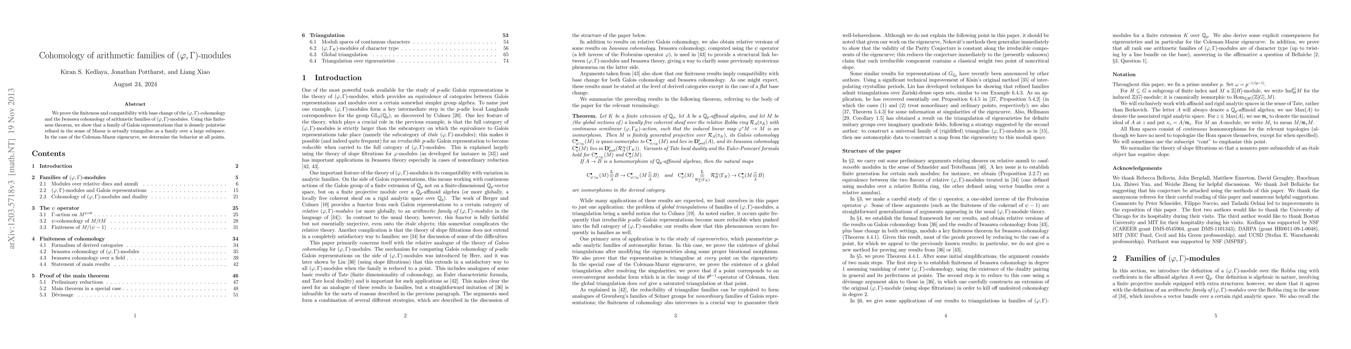 This paper proves the finiteness and base change compatibility of (phi,Gamma)-cohomology and Iwasawa cohomology for arithmetic families of (phi,Gamma)-modules. It demonstrates that Galois representations densely pointwise refined in the sense of Mazur are trianguline over a large subspace, and determines the behavior at all points on the Coleman-Mazur eigencurve.