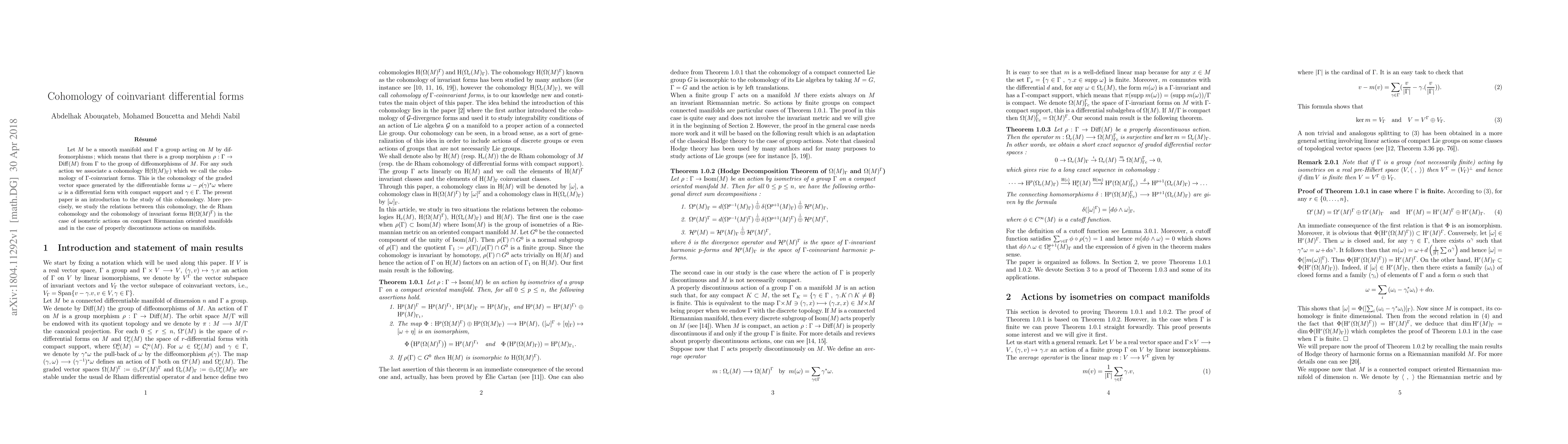 Let $M$ be a smooth manifold and $\Gamma$ a group acting on $M$ by diffeomorphisms; which means that there is a group morphism $\rho:\Gamma\rightarrow \mathrm{Diff}(M)$ from $\Gamma$ to the group of diffeomorphisms of $M$. For any such action we associate a cohomology $\mathrm{H}(\Omega(M)_\Gamma)$ which we call the cohomology of $\Gamma$-coinvariant forms. This is the cohomology of the graded vector space generated by the differentiable forms $\omega -\rho(\gamma)^*\omega$ where $\omega$ is a differential form with compact support and $\gamma\in \Gamma$. The present paper is an introduction to the study of this cohomology. More precisely, we study the relations between this cohomology, the de Rham cohomology and the cohomology of invariant forms $\mathrm{H}(\Omega(M)^\Gamma)$ in the case of isometric actions on compact Riemannian oriented manifolds and in the case of properly discontinuous actions on manifolds.