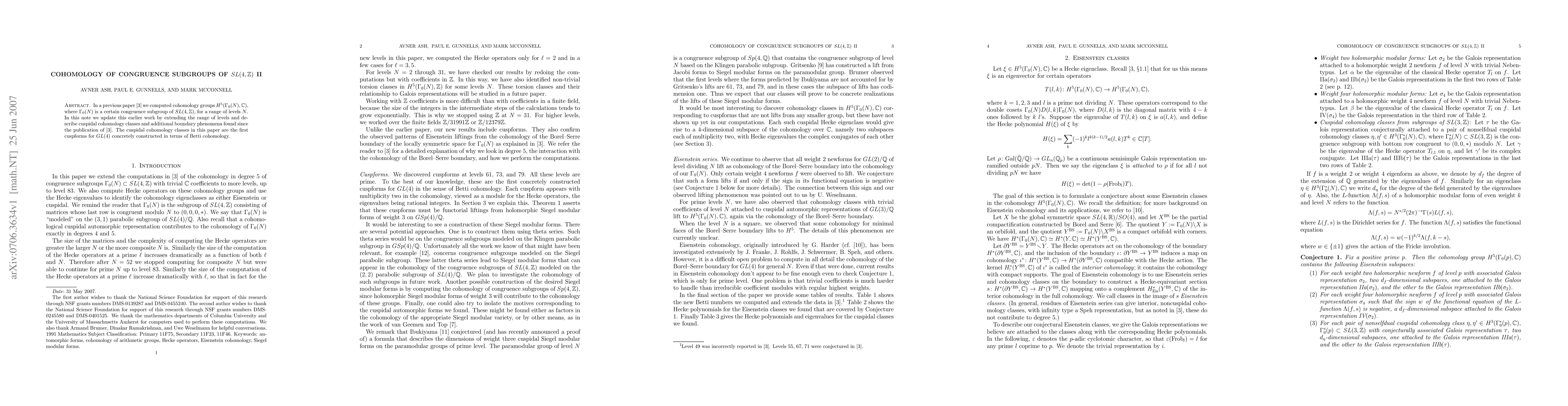In a previous paper [3] we computed cohomology groups H^5 (Gamma_0 (N), \C), where Gamma_0 (N) is a certain congruence subgroup of SL (4, \Z), for a range of levels N. In this note we update this earlier work by extending the range of levels and describe cuspidal cohomology classes and additional boundary phenomena found since the publication of [3]. The cuspidal cohomology classes in this paper are the first cuspforms for GL(4) concretely constructed in terms of Betti cohomology.