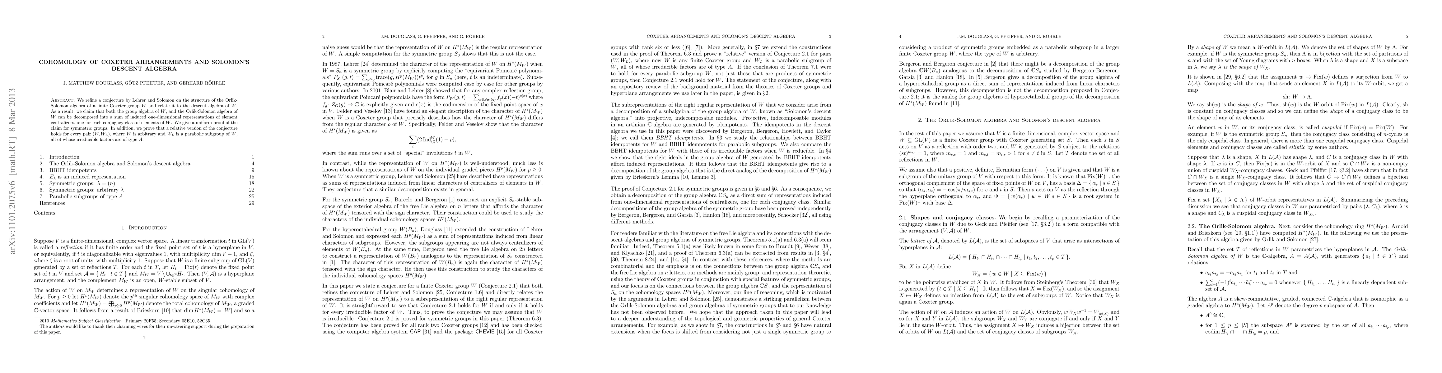 The research used a combination of combinatorial and algebraic techniques to study Coxeter arrangements and Solomon's descentalgebra.