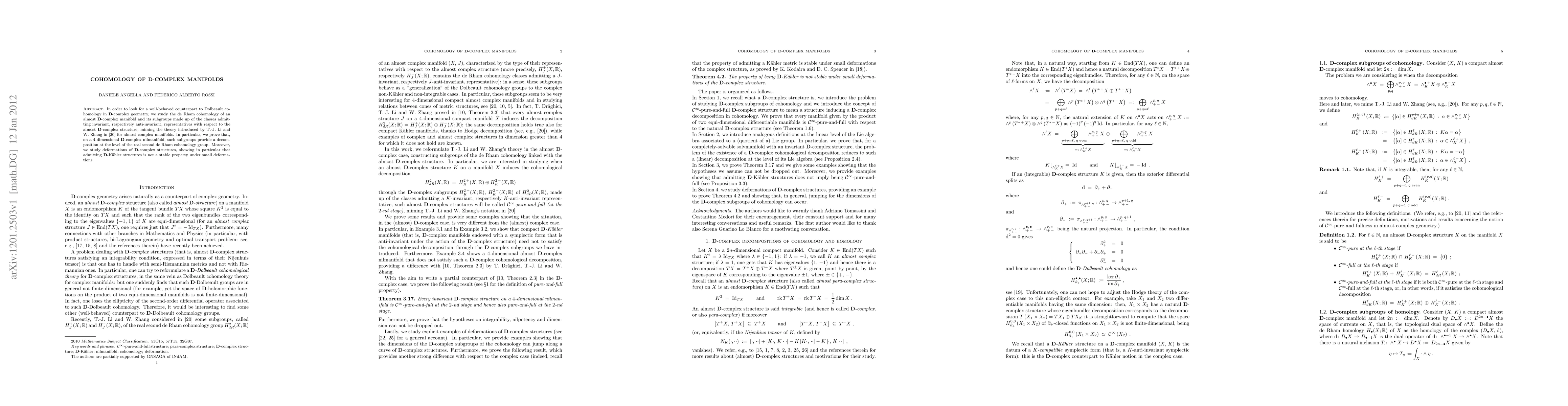This paper explores the de Rham cohomology of almost D-complex manifolds, identifying subgroups with invariant and anti-invariant representatives. It demonstrates a decomposition of the second real de Rham cohomology on 4-dimensional D-complex nilmanifolds and discusses the instability of D-Kähler structures under small deformations.
