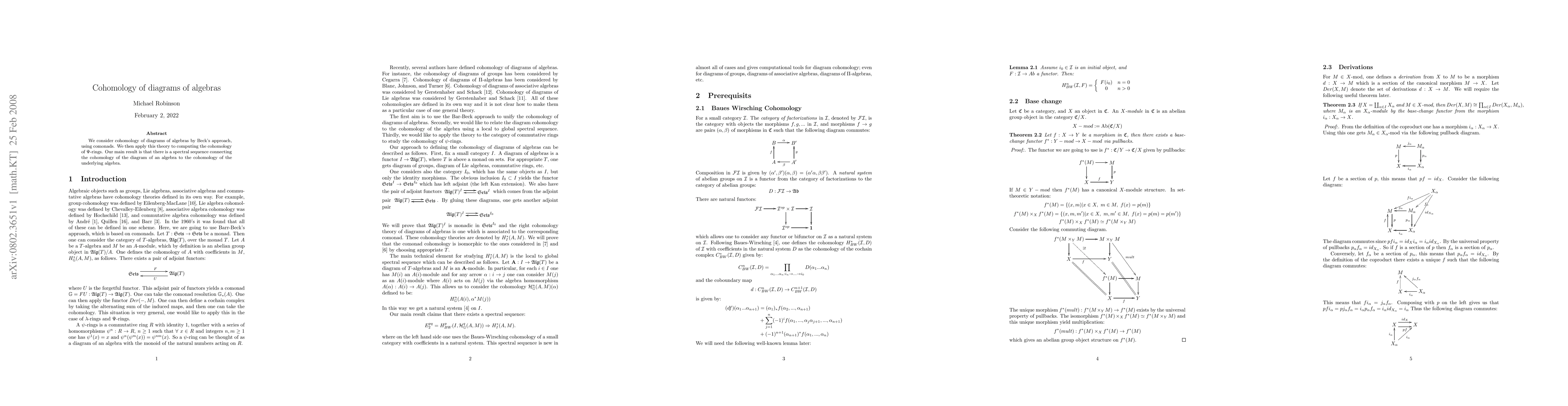 The paper introduces a novel method for analyzing cohomology of diagrams of algebras using comonads, extending Beck's approach and providing a spectral sequence as a key technical result.