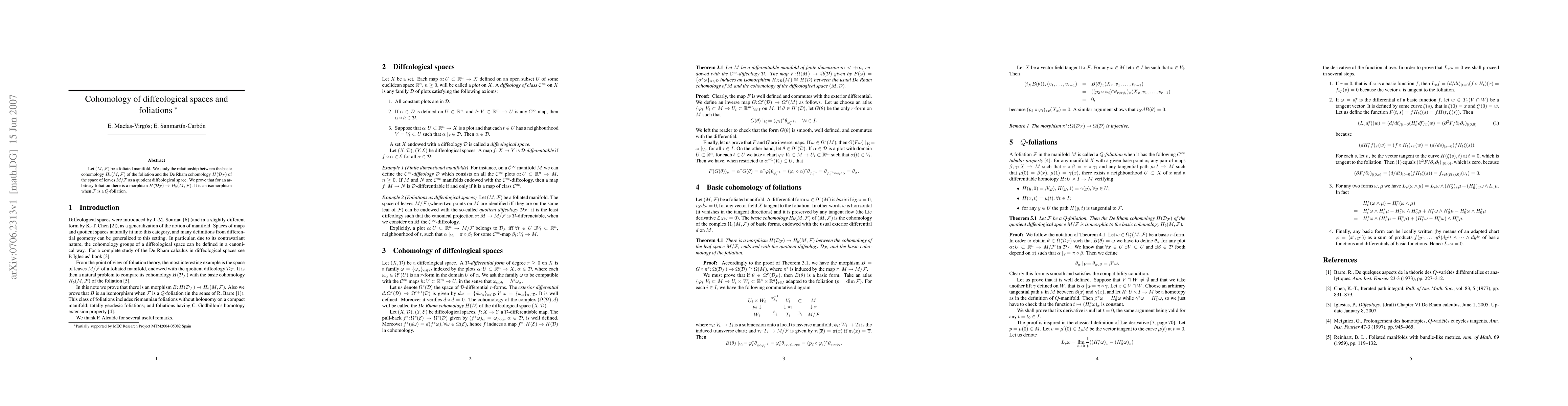 Summary: The paper investigates the connection between the basic cohomology of a foliated manifold and the De Rham cohomology of its leaf space as a diffeological quotient, establishing an isomorphism for Q-foliations.