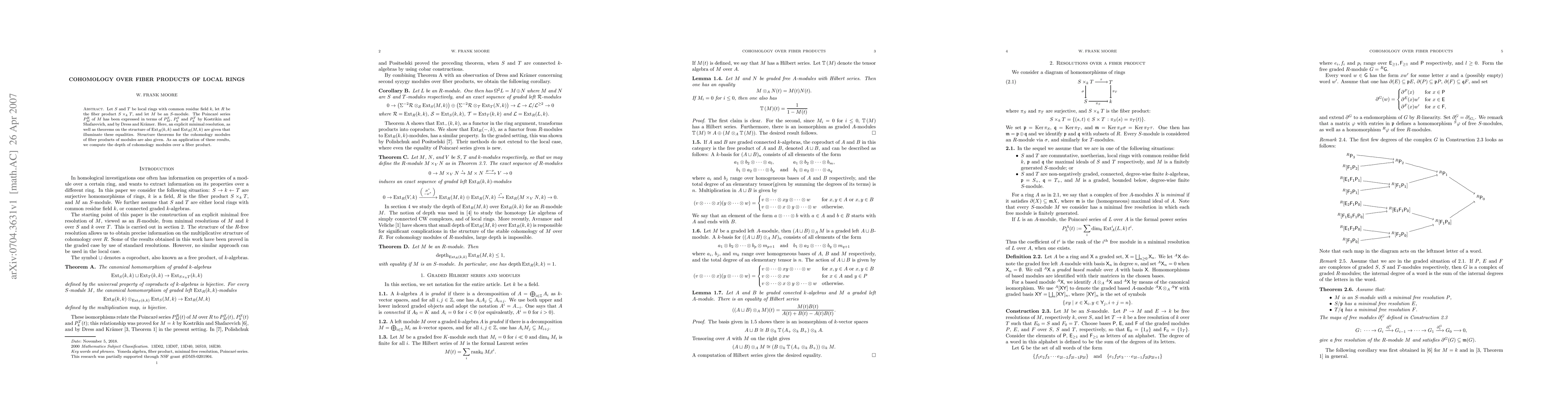 Let $S$ and $T$ be local rings with common residue field $k$, let $R$ be the fiber product $S \times_k T$, and let $M$ be an $S$-module. The Poincar\'e series $P^R_M$ of $M$ has been expressed in terms of $P^S_M$, $P^S_k$ and $P^T_k$ by Kostrikin and Shafarevich, and by Dress and Kr\"amer. Here, an explicit minimal resolution, as well as theorems on the structure of $\Ext_R(k,k)$ and $\Ext_R(M,k)$ are given that illuminate these equalities. Structure theorems for the cohomology modules of fiber products of modules are also given. As an application of these results, we compute the depth of cohomology modules over a fiber product.