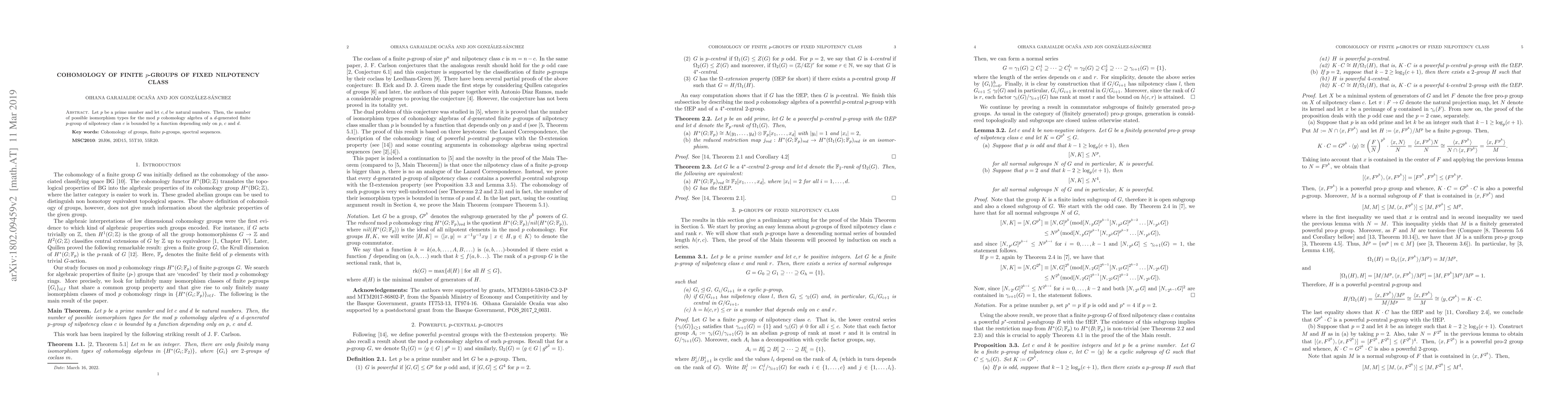 Let p be a prime number and let c, d be natural numbers. Then, the number of possible isomorphism types for the mod p cohomology algebra of a d-generated finite p-group of nilpotency class c is bounded by a function depending only on p, c and d.