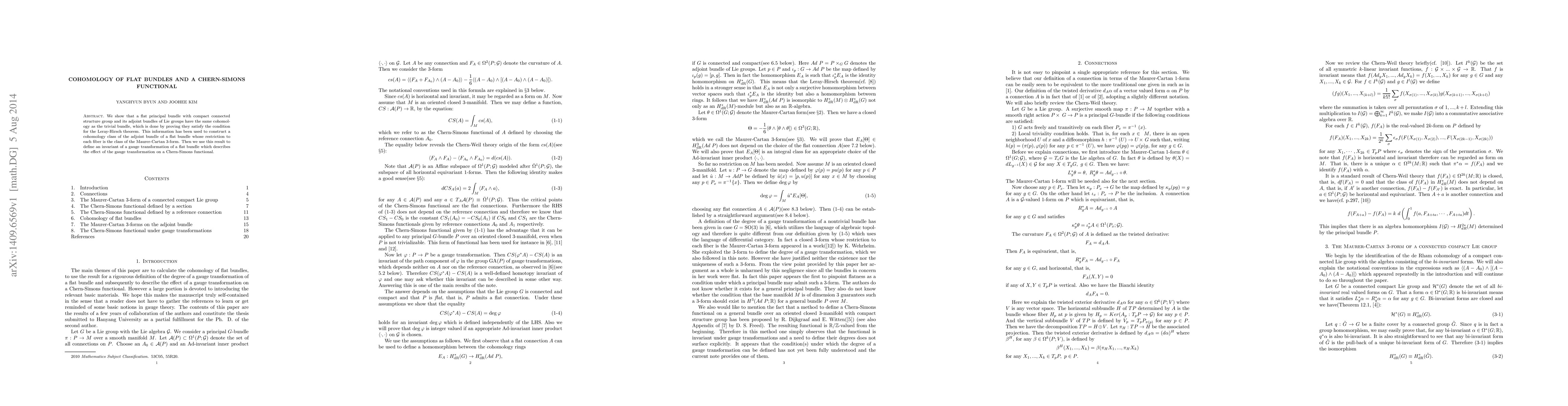 We show that a flat principal bundle with compact connected structure group and its adjoint bundles of Lie groups have the same cohomology as the trivial bundle, which is done by proving they satisfy the condition for the Leray-Hirsch theorem. This information has been used to construct a cohomology class of the adjoint bundle of a flat bundle whose restriction to each fiber is the class of the Maurer-Cartan 3-form. Then we use this result to define an invariant of a gauge transformation of a flat bundle which describes the effect of the gauge transformation on a Chern-Simons functional.