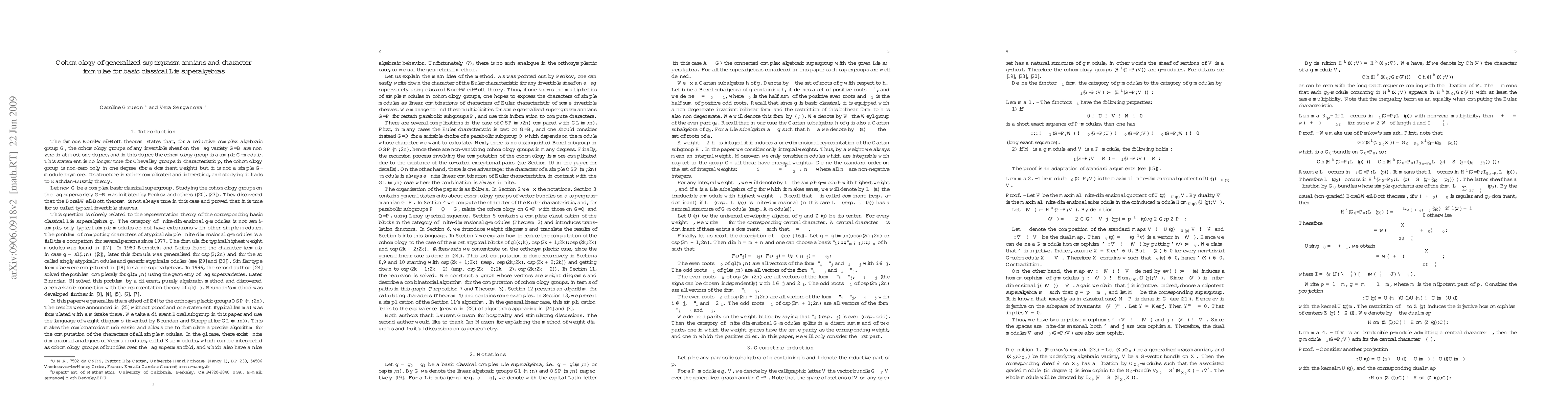 In this paper, we use geometrical methods adapted from the Borel-Weil-Bott theory to compute the character of every finite dimensional simple module over a basic classical Lie superalgebra.