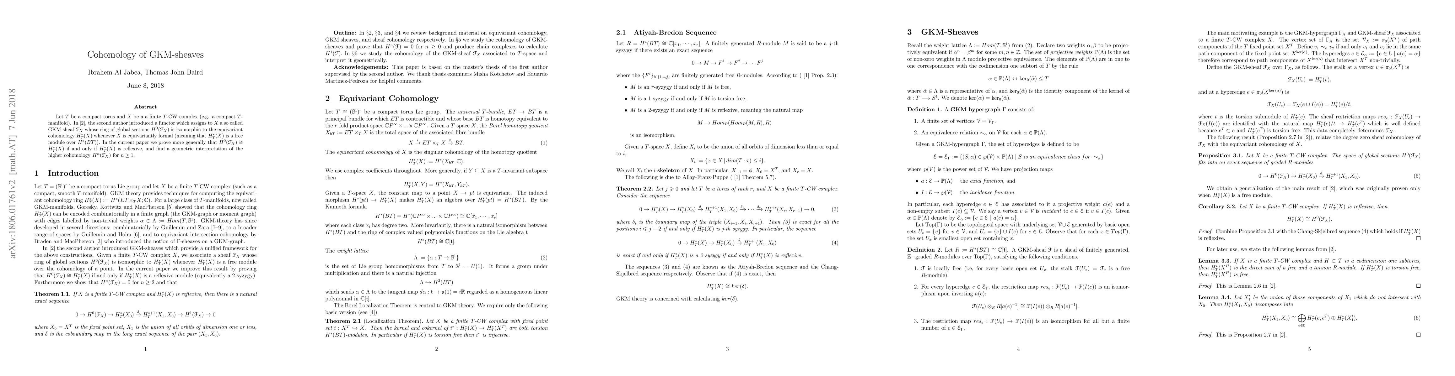 Let $T$ be a compact torus and $X$ be a a finite $T$-CW complex (e.g. a compact $T$-manifold). In earlier work, the second author introduced a functor which assigns to $X$ a so called GKM-sheaf $\mathcal{F}_X$ whose ring of global sections $H^0(\mathcal{F}_X)$ is isomorphic to the equivariant cohomology $H^*_T(X)$ whenever $X$ is equivariantly formal (meaning that $H^*_T(X)$ is a free module over $H^*(BT))$. In the current paper we prove more generally that $H^0(\mathcal{F}_X) \cong H^*_T(X)$ if and only if $H_T^*(X)$ is reflexive, and find a geometric interpretation of the higher cohomology $H^n(\mathcal{F}_X)$ for $n \geq 1$.