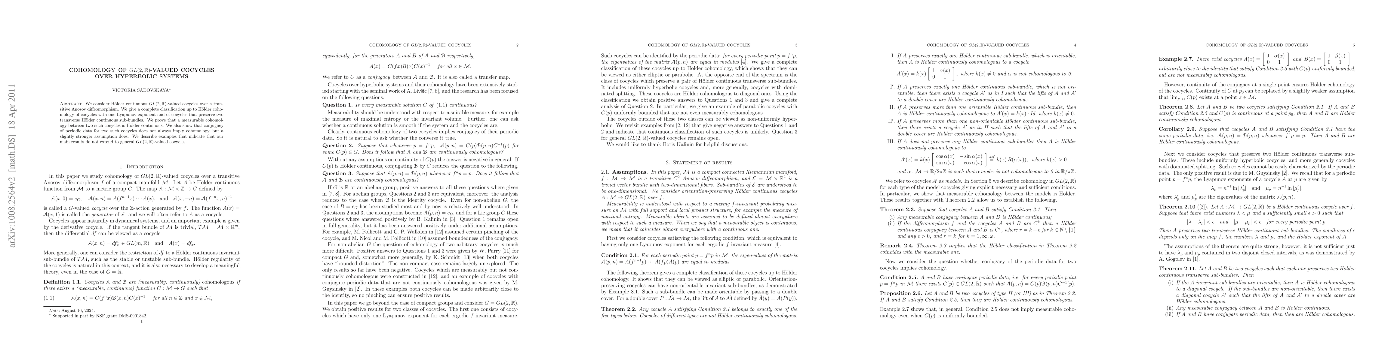 This paper classifies Holder continuous GL(2,R)-valued cocycles over transitive Anosov diffeomorphisms up to Holder cohomology, showing measurable cohomology between such cocycles is also Holder continuous. It demonstrates that conjugacy does not always imply cohomology, but a stronger assumption does.