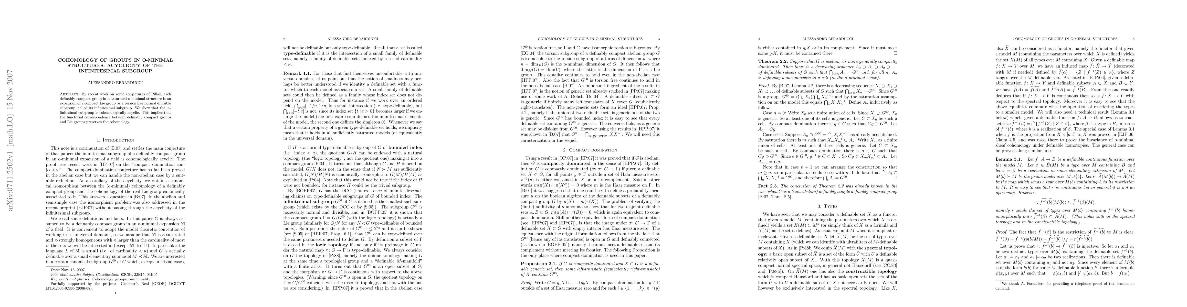 This paper proves that the infinitesimal subgroup of a definably compact group in an o-minimal structure is cohomologically acyclic, preserving a key correspondence between groups and Lie groups.