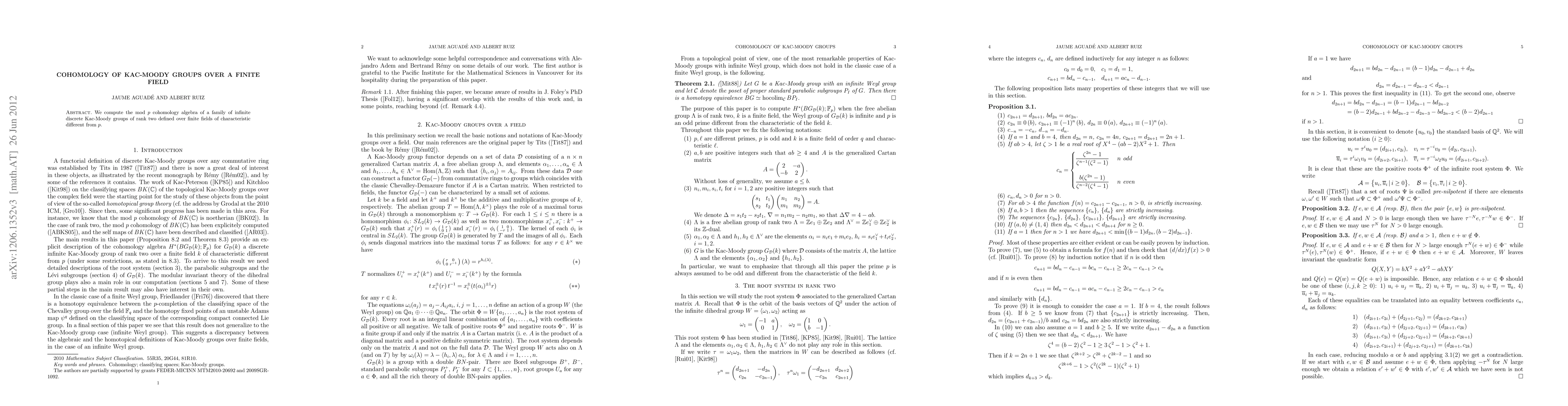 Summary: This paper computes the mod $p$ cohomology algebra for a family of rank two Kac-Moody groups over finite fields, providing insights into their algebraic structure. The results contribute to understanding the cohomological properties of infinite discrete Kac-Moody groups.