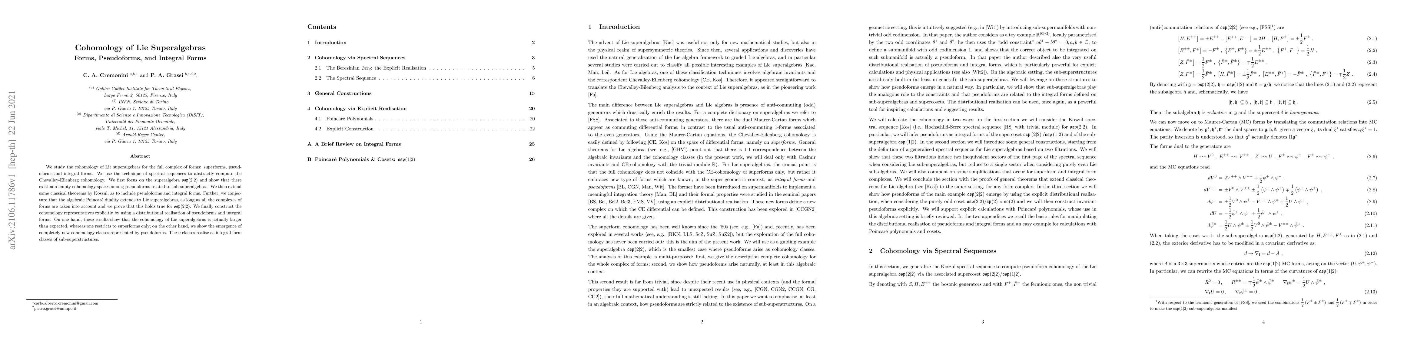 This paper investigates the cohomology of Lie superalgebras, particularly $\mathfrak{osp}(2|2)$, using spectral sequences. It identifies non-trivial cohomology spaces among pseudoforms and extends classical theorems to include pseudoforms and integral forms, proving the conjectured algebraic Poincaré duality for $\mathfrak{osp}(2|2)$ and revealing new cohomology classes represented by pseudoforms.