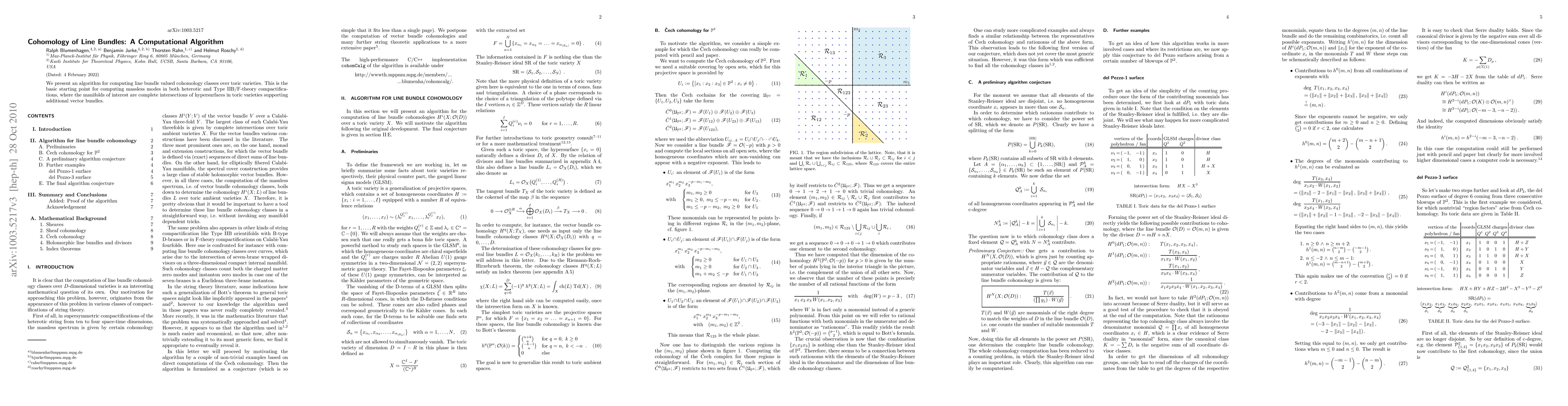 We present an algorithm for computing line bundle valued cohomology classes over toric varieties. This is the basic starting point for computing massless modes in both heterotic and Type IIB/F-theory compactifications, where the manifolds of interest are complete intersections of hypersurfaces in toric varieties supporting additional vector bundles.