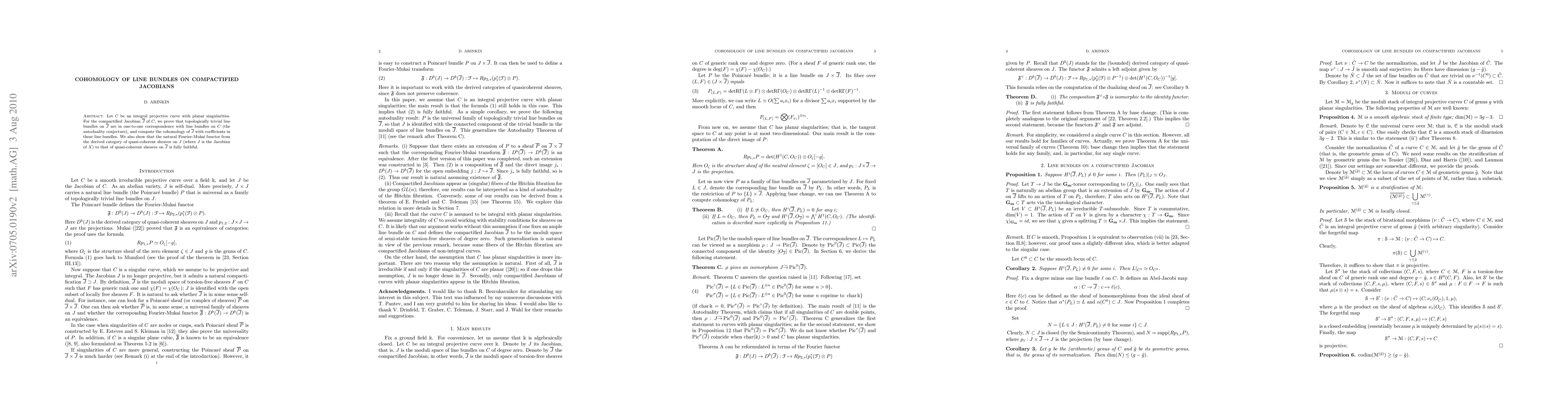Let C be an integral projective curve with surficial singularities. We prove that topologically trivial line bundles on the compactified Jacobian of C are in one-to-one correspondence with line bundles on C (the autoduality conjecture), and compute the cohomology of the line bundles. We also show that the natural Fourier-Mukai functor between the derived categories of quasi-coherent sheaves on the Jacobian and on the compactified Jacobian is fully faithful.