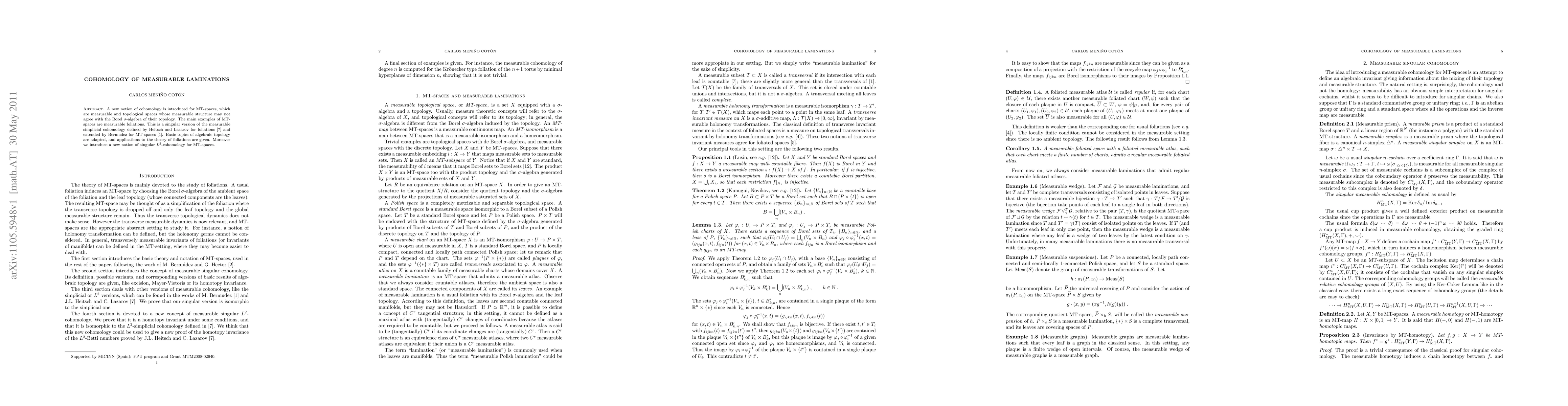 This paper introduces a new cohomology notion for MT-spaces, which are measurable and topological spaces with potentially mismatched measurable and Borel structures. The work extends previous measurable simplicial cohomology, with applications to the theory of measurable foliations and a new singular L2-cohomology concept.