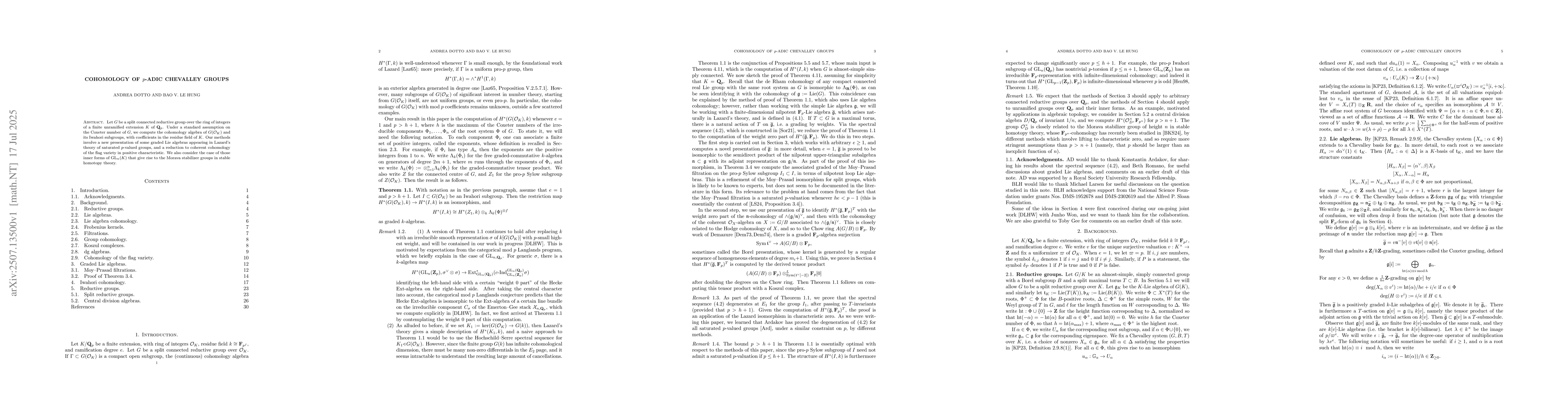 Let $G$ be a split connected reductive group over the ring of integers of a finite unramified extension $K$ of $\mathbf{Q}_p$. Under a standard assumption on the Coxeter number of $G$, we compute the cohomology algebra of $G(\mathcal{O}_K)$ and its Iwahori subgroups, with coefficients in the residue field of $K$. Our methods involve a new presentation of some graded Lie algebras appearing in Lazard's theory of saturated $p$-valued groups, and a reduction to coherent cohomology of the flag variety in positive characteristic. We also consider the case of those inner forms of $\mathrm{GL}_n(K)$ that give rise to the Morava stabilizer groups in stable homotopy theory.