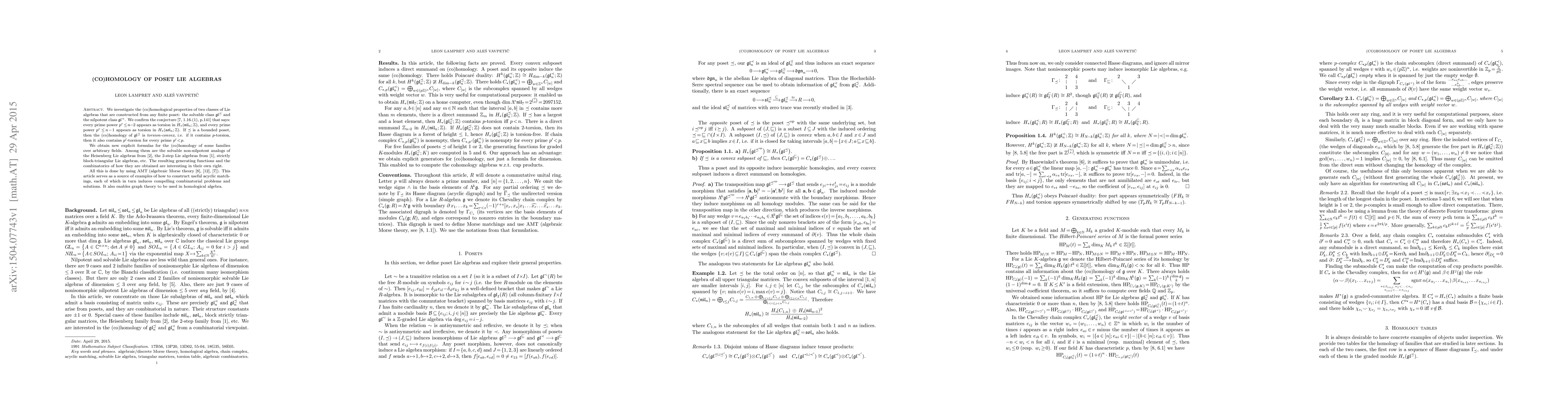 We investigate the (co)homological properties of two classes of Lie algebras that are constructed from any finite poset: the solvable class $\frak{gl}^\preceq$ and the nilpotent class $\frak{gl}^\prec$. We confirm the conjecture of Jollenbeck that says: every prime power $p^r\!\leq\!n\!-\!2$ appears as torsion in $H_\ast(\frak{nil}_n;\mathbb{Z})$, and every prime power $p^r\!\leq\!n\!-\!1$ appears as torsion in $H_\ast(\frak{sol}_n;\mathbb{Z})$. If $\preceq$ is a bounded poset, then the (co)homology of $\frak{gl}^\preceq$ is \emph{torsion-convex}, i.e. if it contains $p$-torsion, then it also contains $p'$-torsion for every prime $p'\!<\!p$. \par We obtain new explicit formulas for the (co)homology of some families over arbitrary fields. Among them are the solvable non-nilpotent analogs of the Heisenberg Lie algebras from the Cairns & Jambor article, the 2-step Lie algebras from Armstrong & Cairns & Jessup article, strictly block-triangular Lie algebras, etc. The resulting generating functions and the combinatorics of how they are obtained are interesting in their own right. \par All this is done by using AMT (algebraic Morse theory). This article serves as a source of examples of how to construct useful acyclic matchings, each of which in turn induces compelling combinatorial problems and solutions. It also enables graph theory to be used in homological algebra.