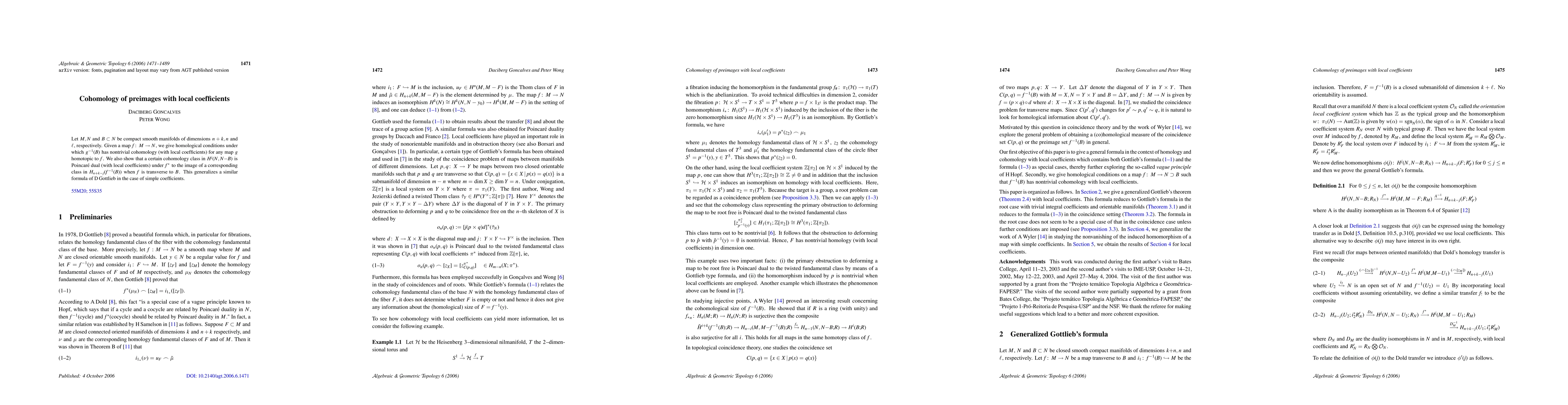 Let M,N and B\subset N be compact smooth manifolds of dimensions n+k,n and \ell, respectively. Given a map f from M to N, we give homological conditions under which g^{-1}(B) has nontrivial cohomology (with local coefficients) for any map g homotopic to f. We also show that a certain cohomology class in H^j(N,N-B) is Poincare dual (with local coefficients) under f^* to the image of a corresponding class in H_{n+k-j}(f^{-1}(B)) when f is transverse to B. This generalizes a similar formula of D Gottlieb in the case of simple coefficients.