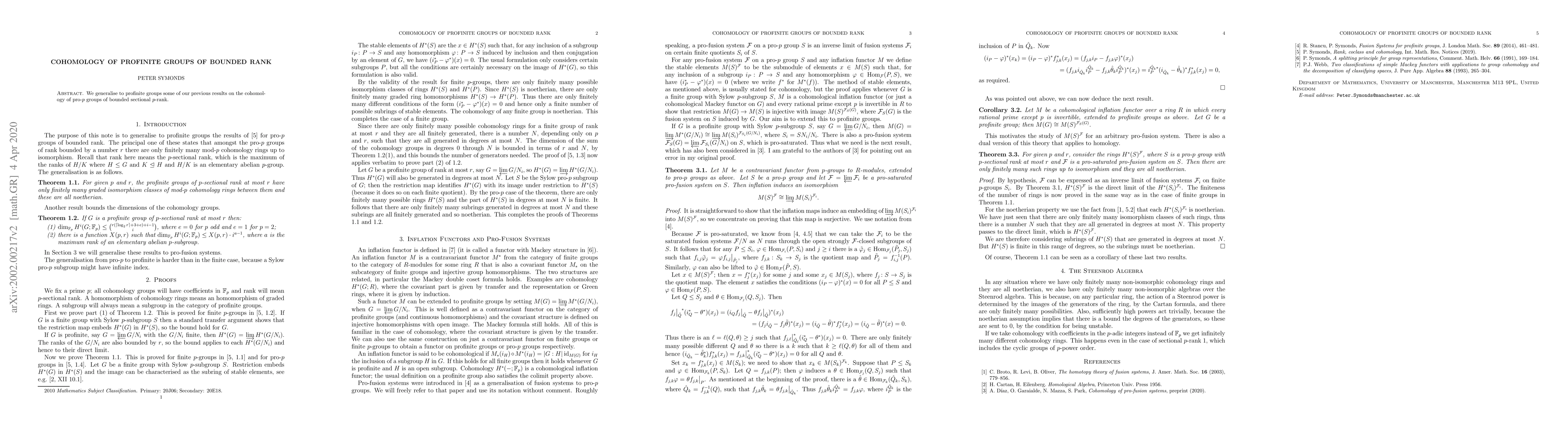 Summary: This paper extends earlier findings on the cohomology of pro-p groups with bounded sectional p-rank to a broader context of profinite groups of bounded rank. The results provide new insights into the cohomological structure of these groups.