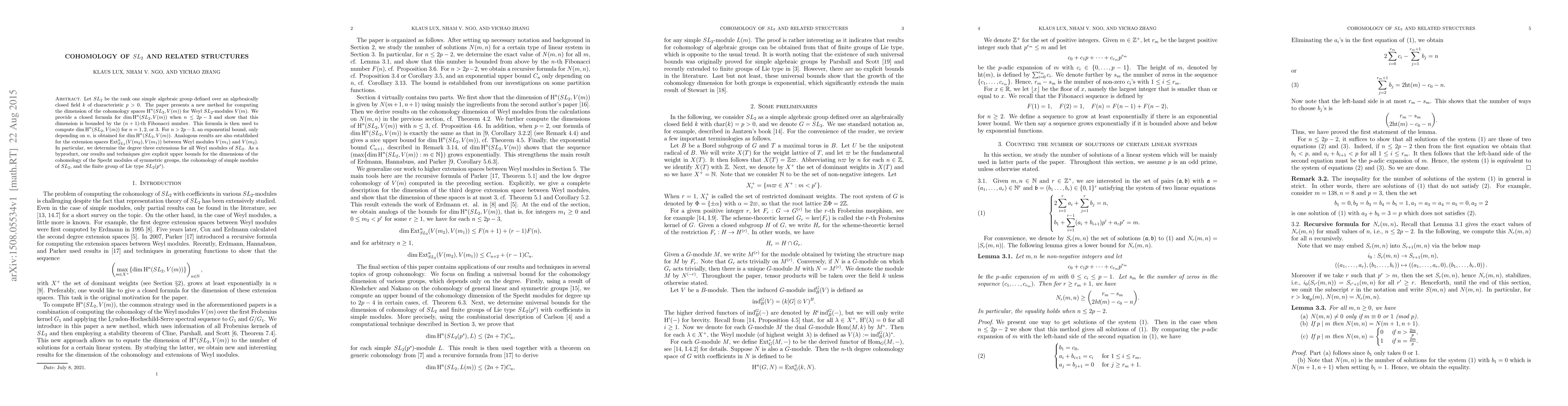 This paper develops a new method for computing cohomology dimensions of $SL_2$ group modules and provides closed formulas for certain cases, offering bounds on the dimensions for higher $n$.